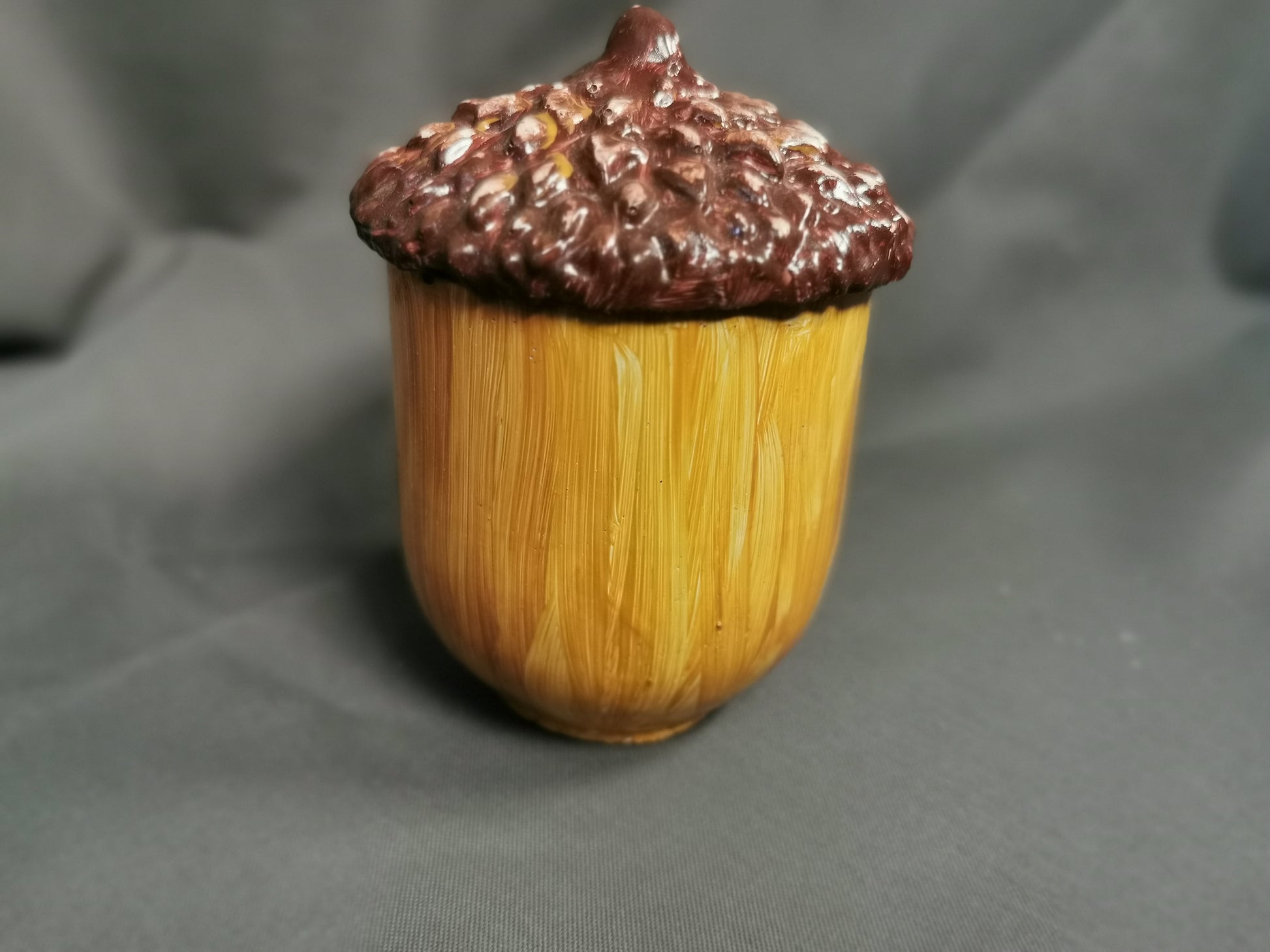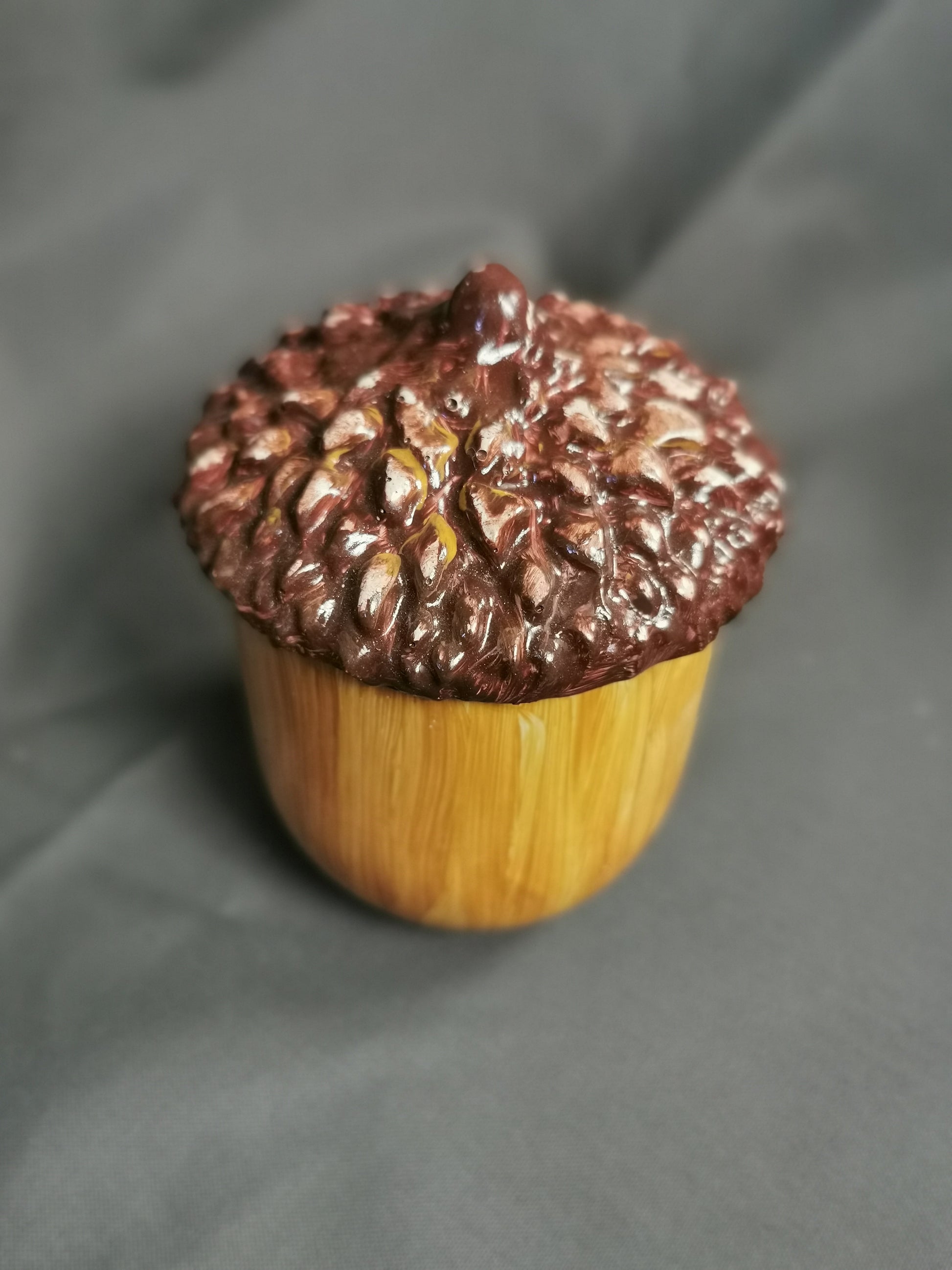 Sehr schöne Betondose in Eichelform, handgefertigt und handbemalt, ob als Schmuckdose, Bad Organizer oder einfach als Deko immer ein Hingucker.