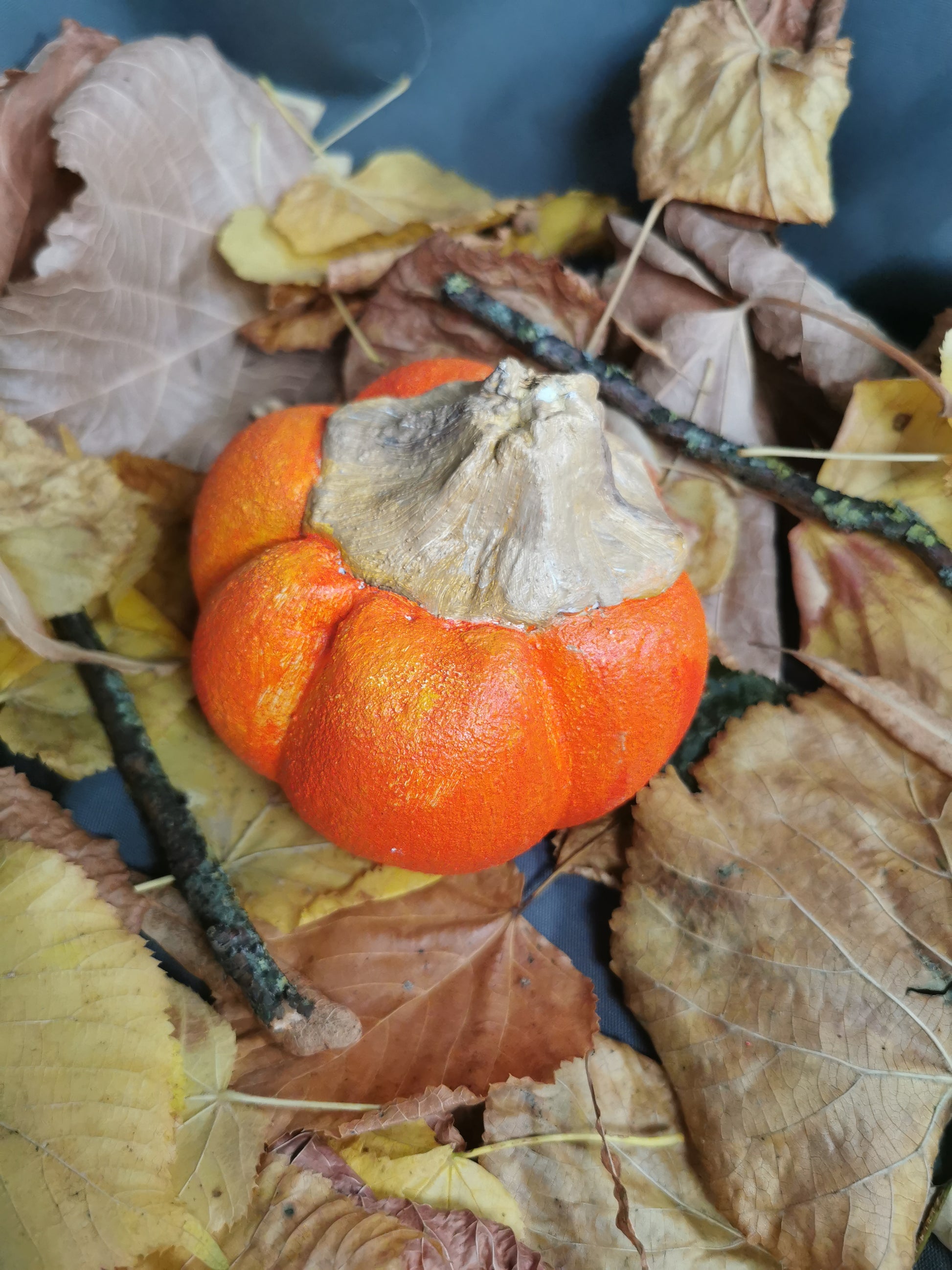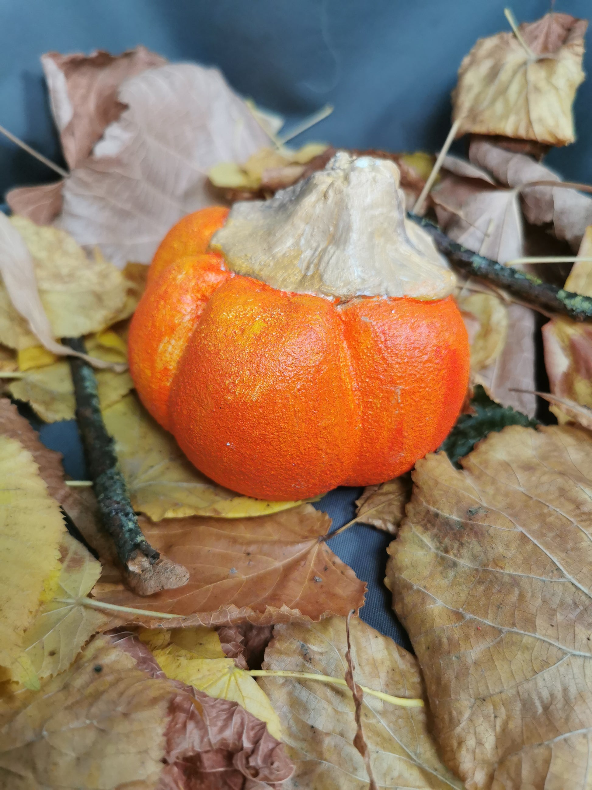 Betonkürbis "Baby-Bear", Handgefertigt, handbemalt, für drinnen oder draußen