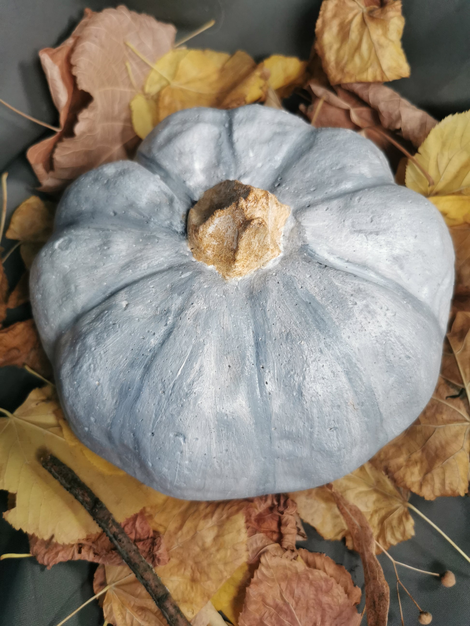 Betonkürbis "blue Ballet" grau, Handgefertigt, handbemalt, für drinnen oder draußen