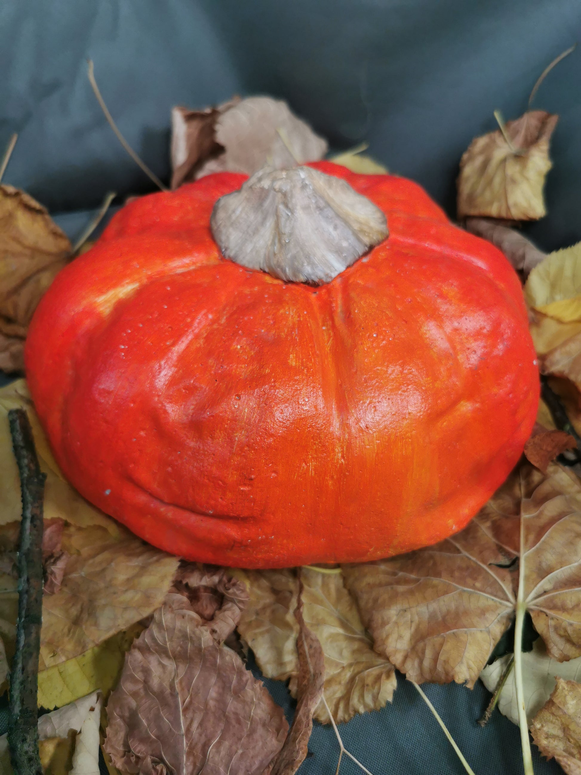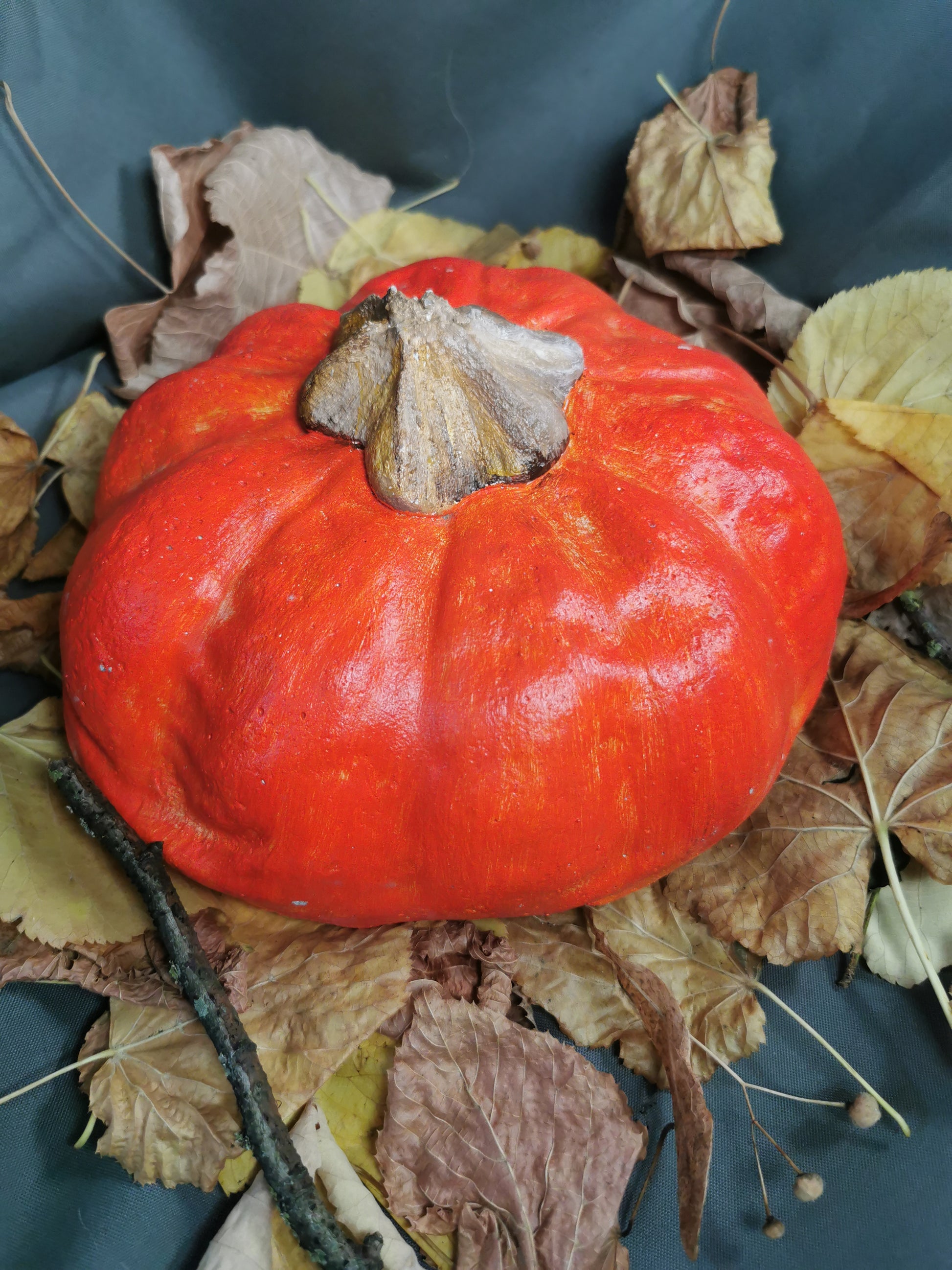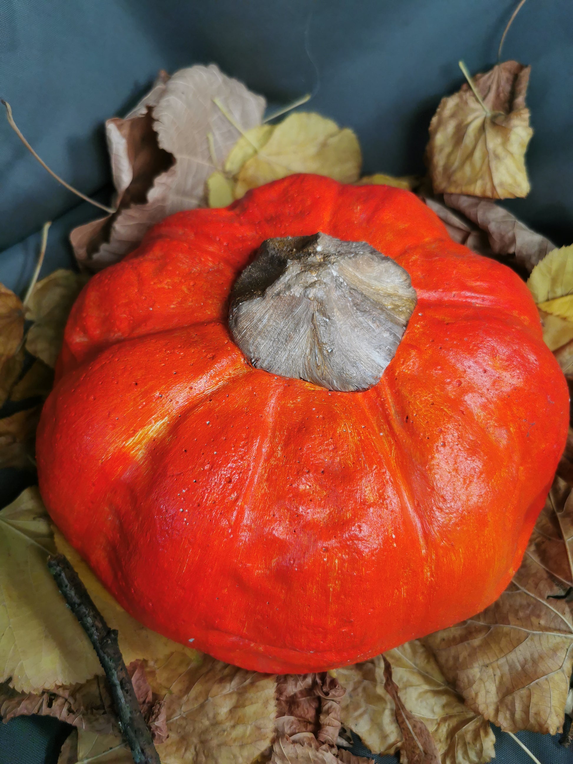 Betonkürbis "Gelber Zentner", Handgefertigt, handbemalt, für drinnen oder draußen