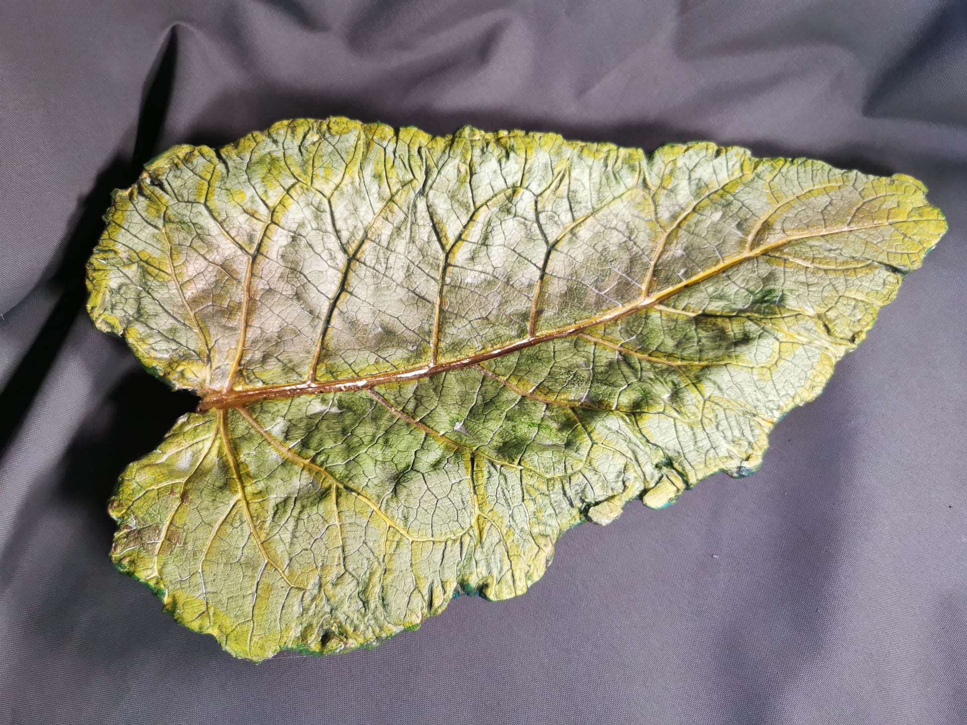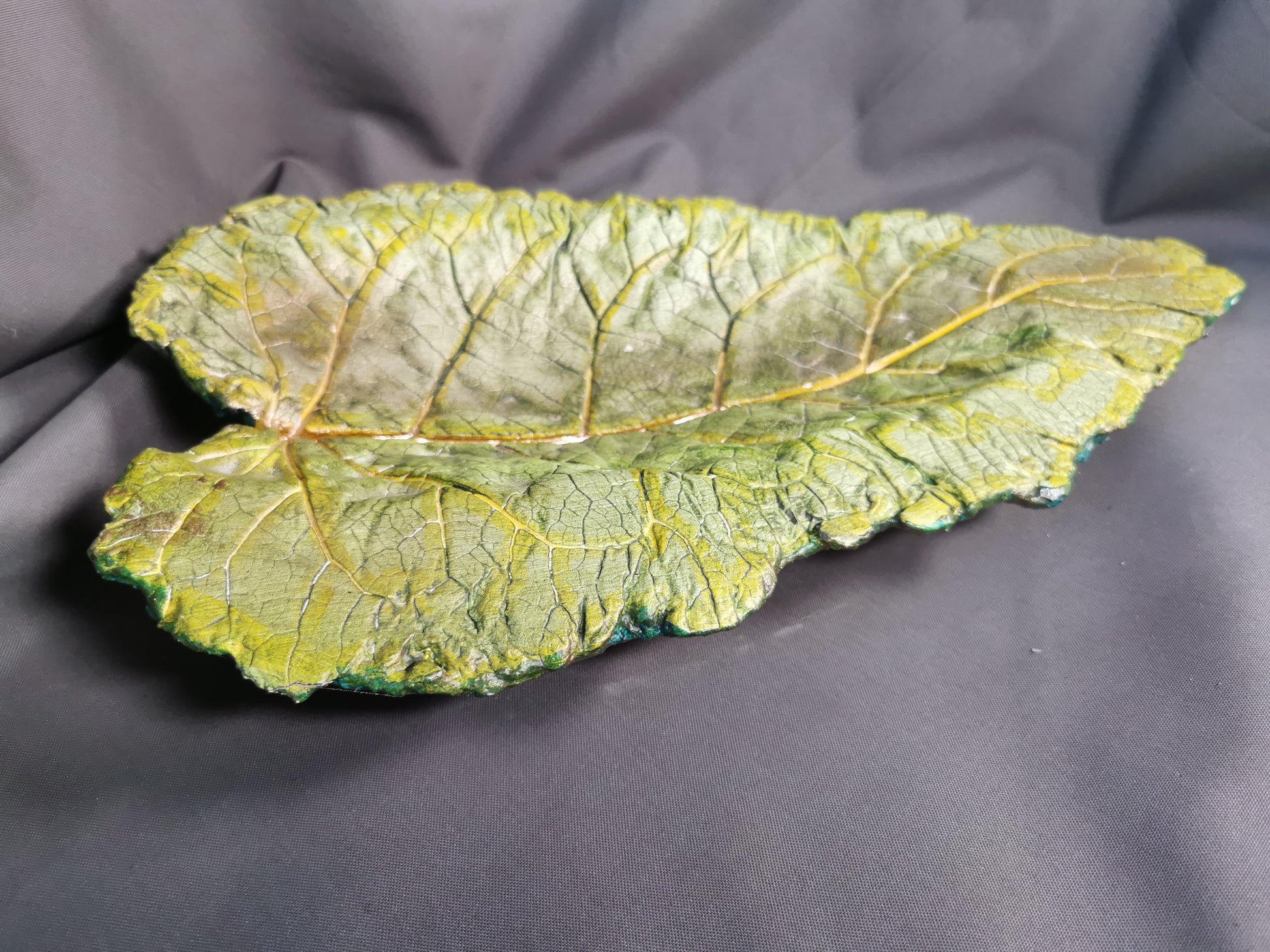 Blattschale aus Beton, eine tolle Schale in Form eines Blattes, ob auf einem Tisch, Sideboard oder im Bad immer ein Blickfang. Unterseite in goldfarben lackiert mit Filzfüßen.