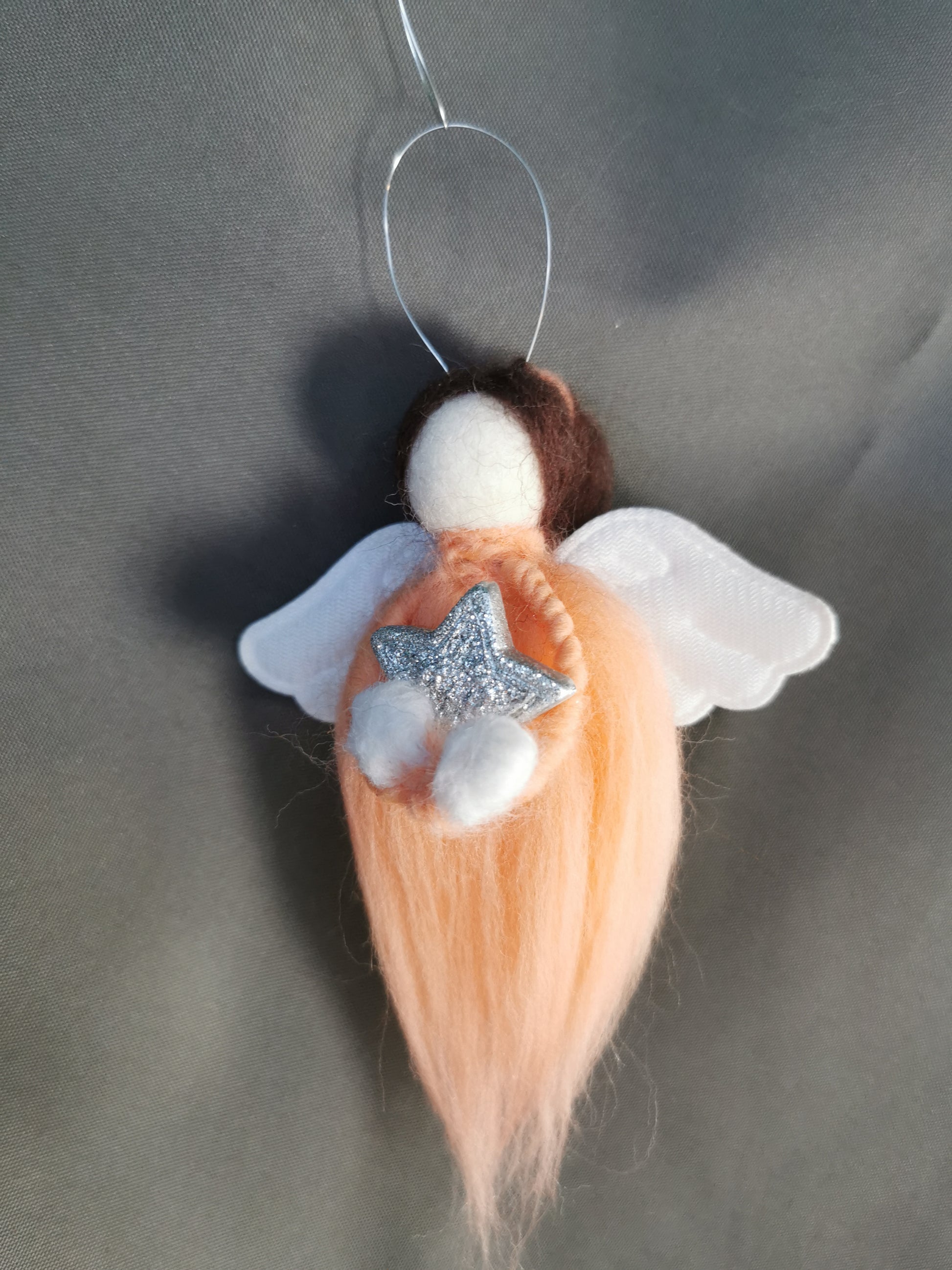 Filz Engel mit silberfarbenem Stern, Aufhänger, Baumschmuck, Handarbeit verschiedene Ausführungen
