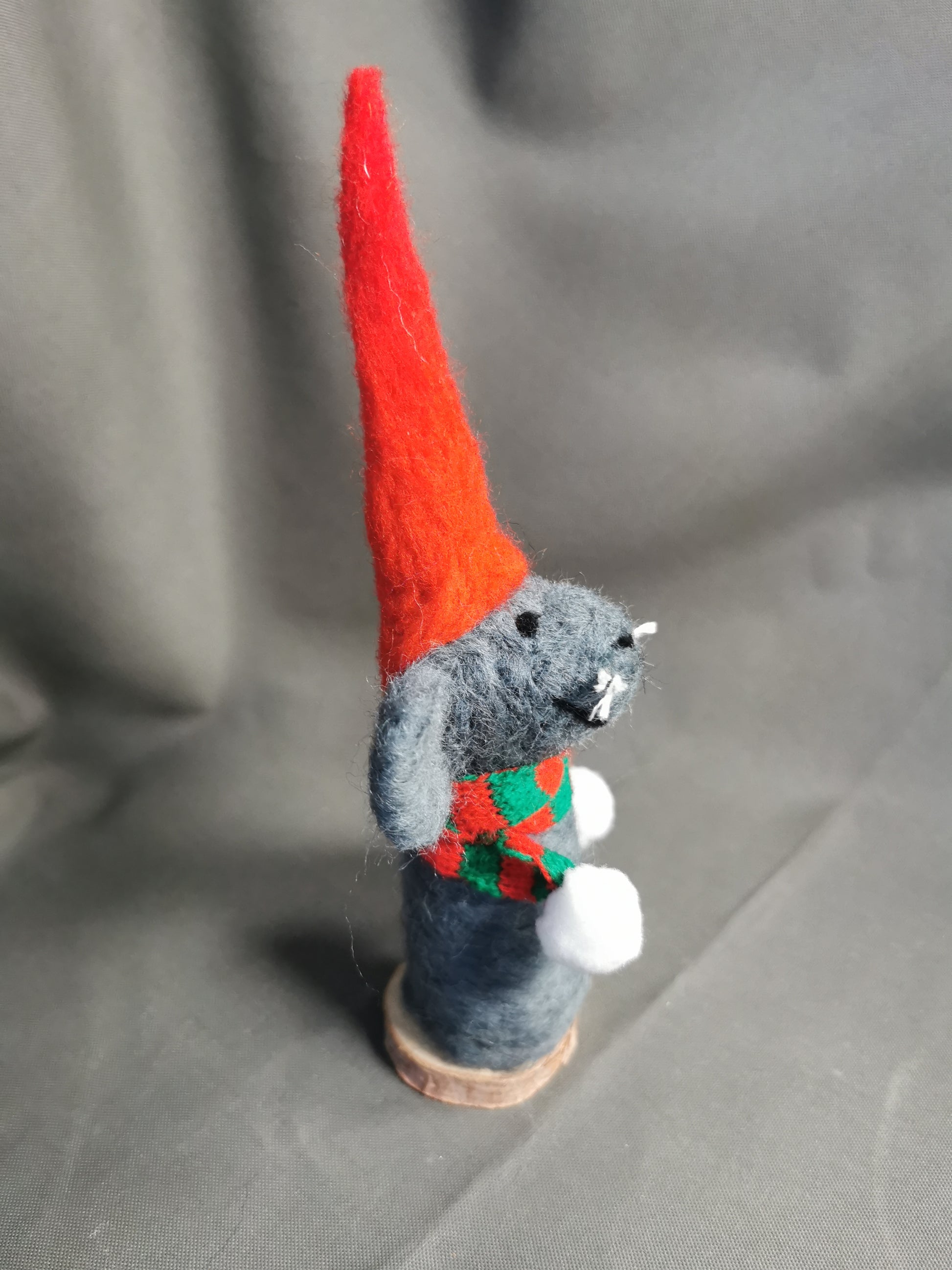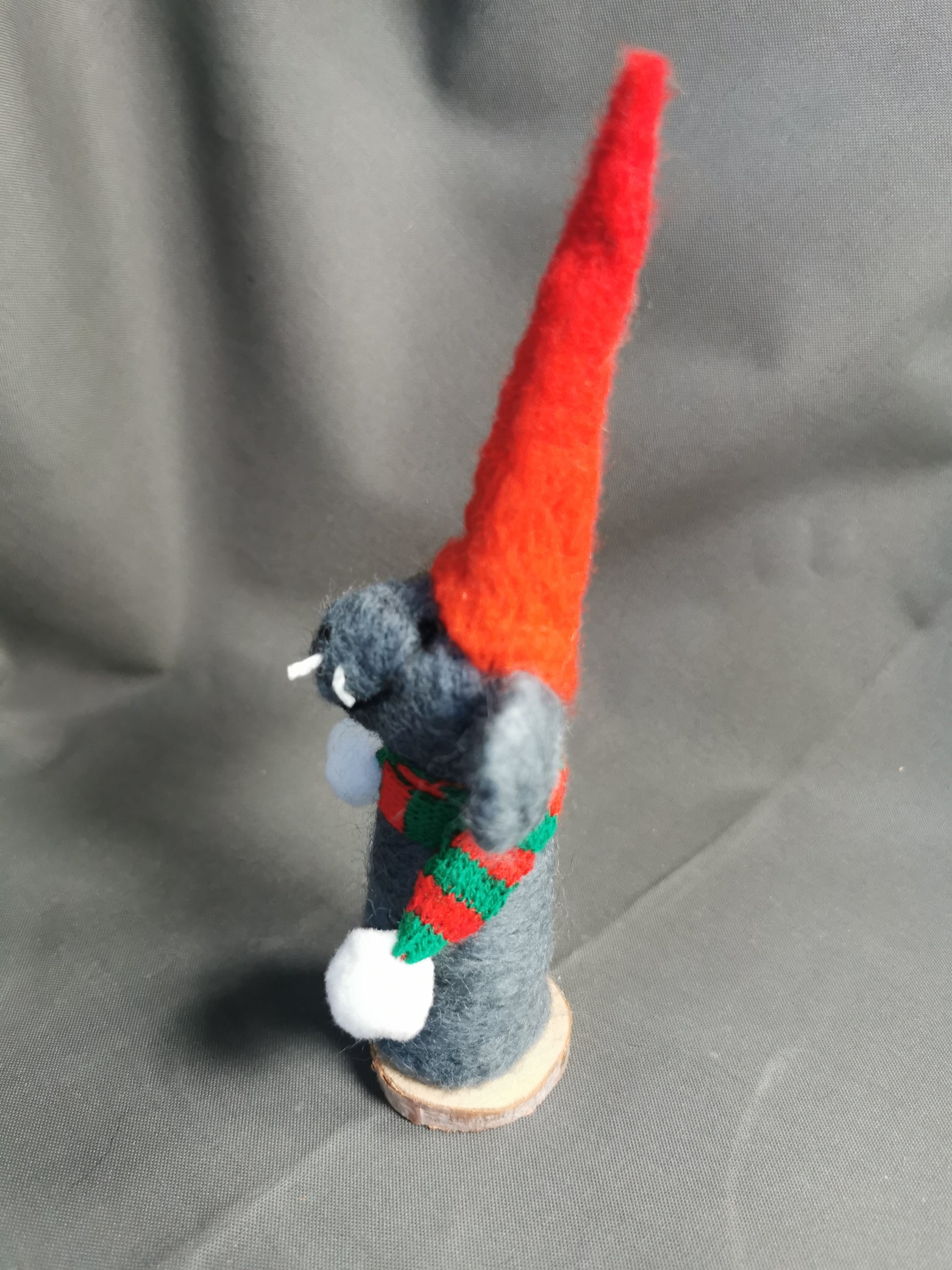 Filz Maus auf einer Holzscheibe, handgefertigt, Einzelstück