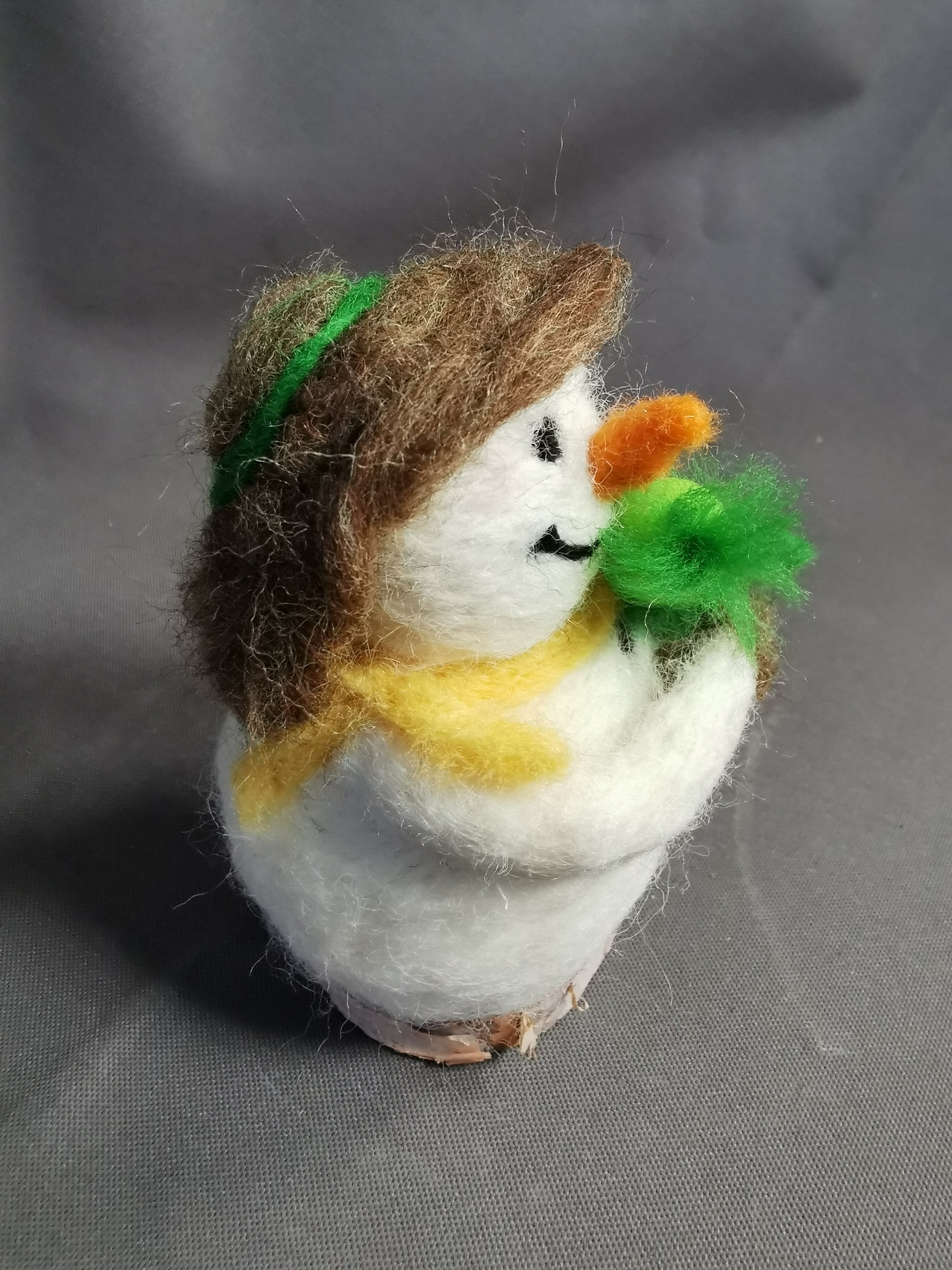 Filz Schneemann mit Grinch Puppe auf einer Holzscheibe, handgefertigt, Einzelstück
