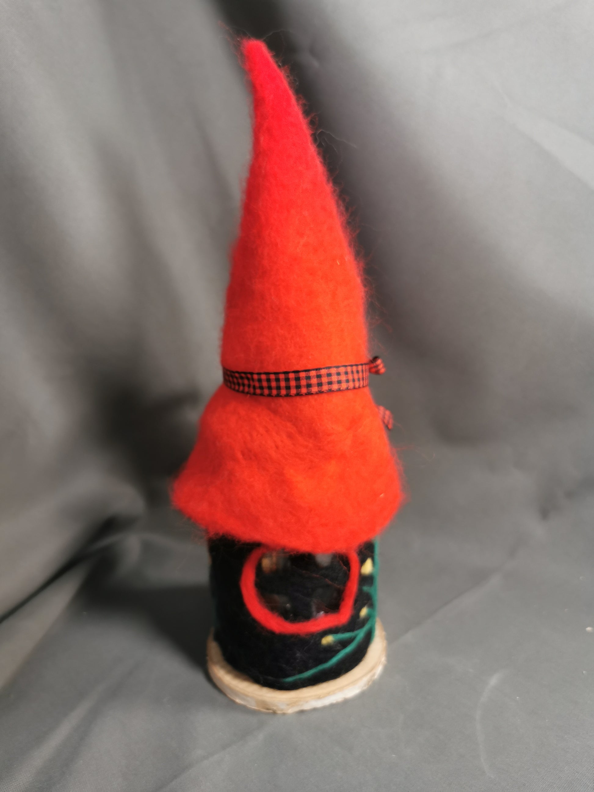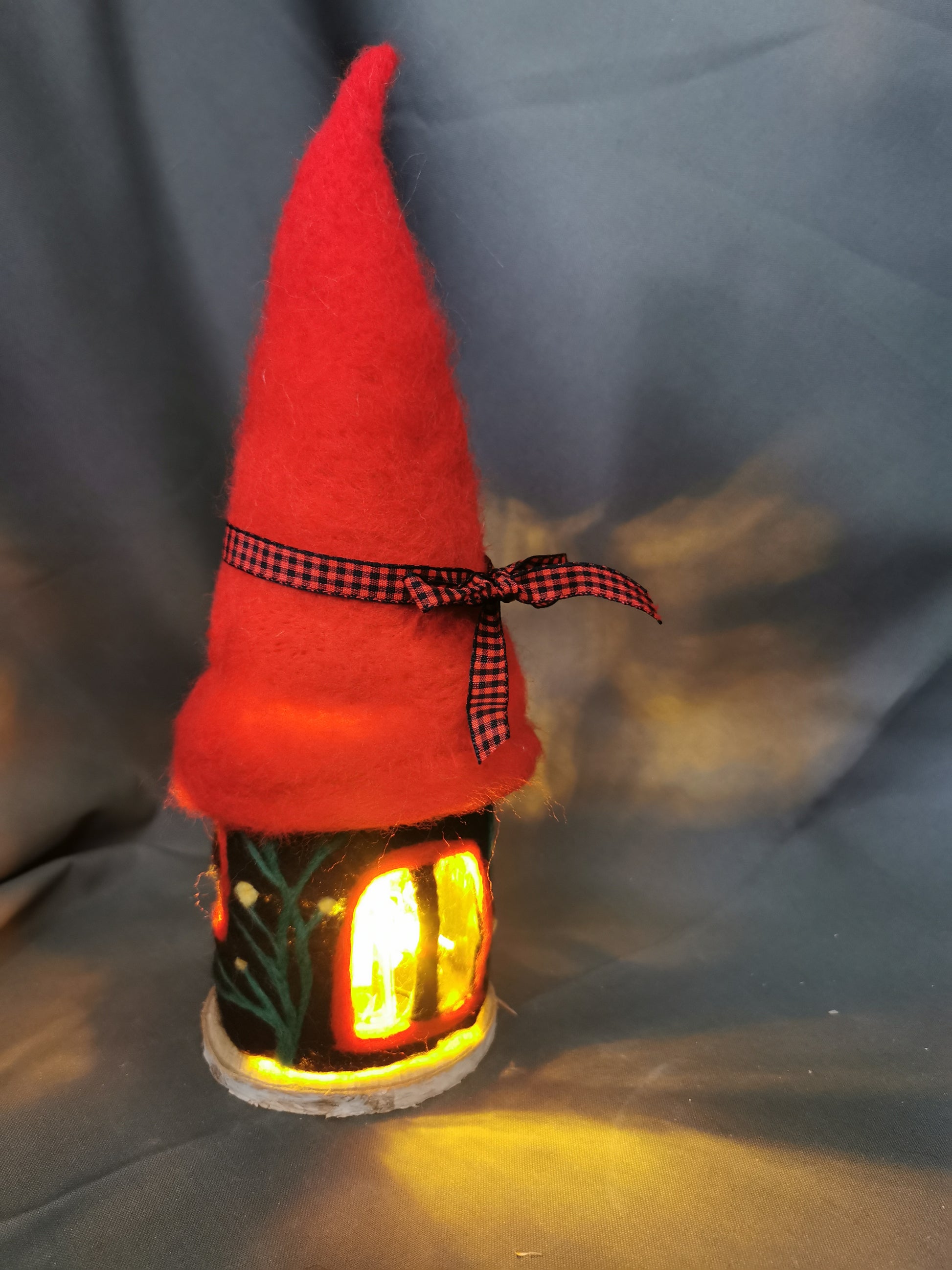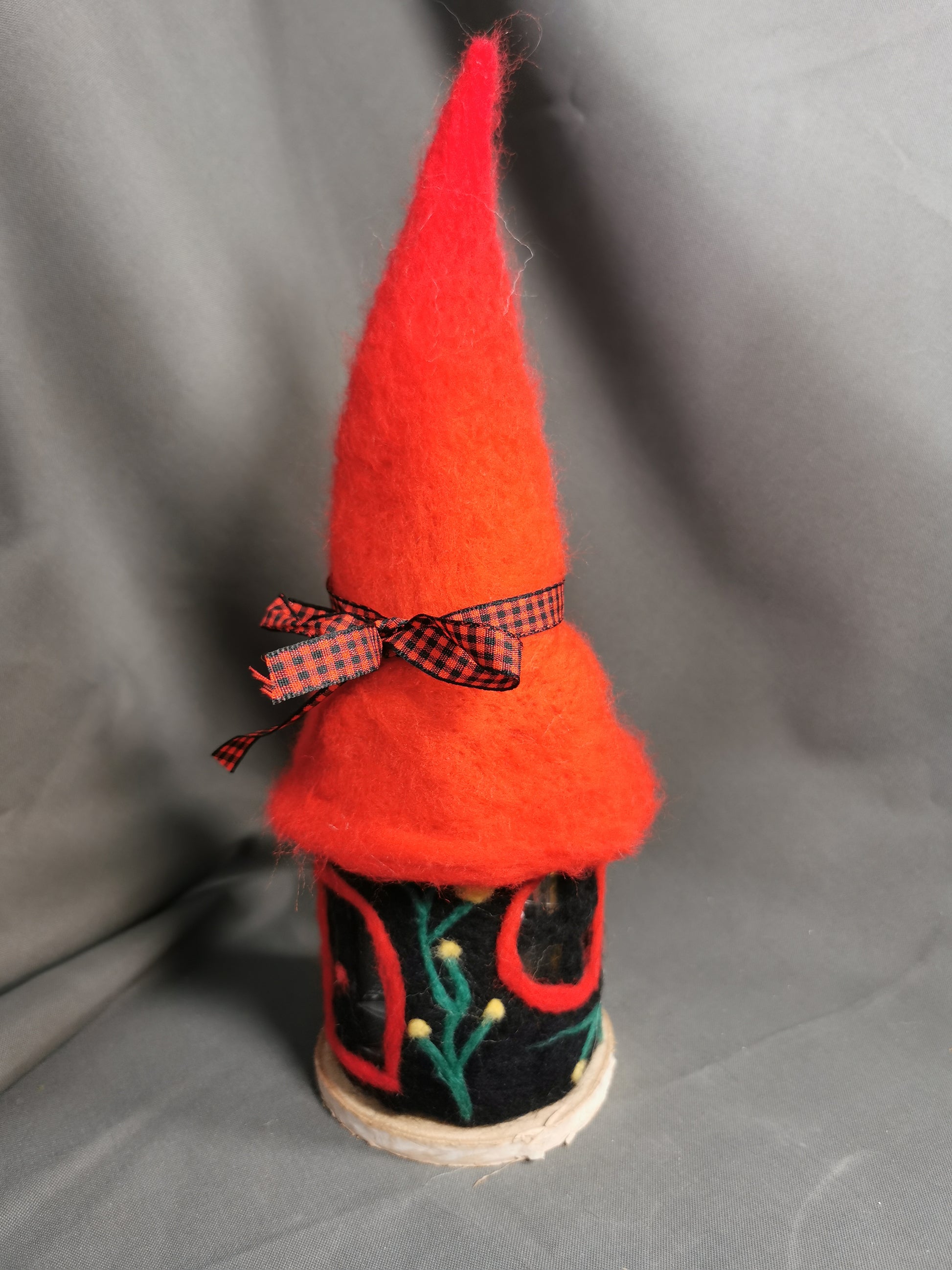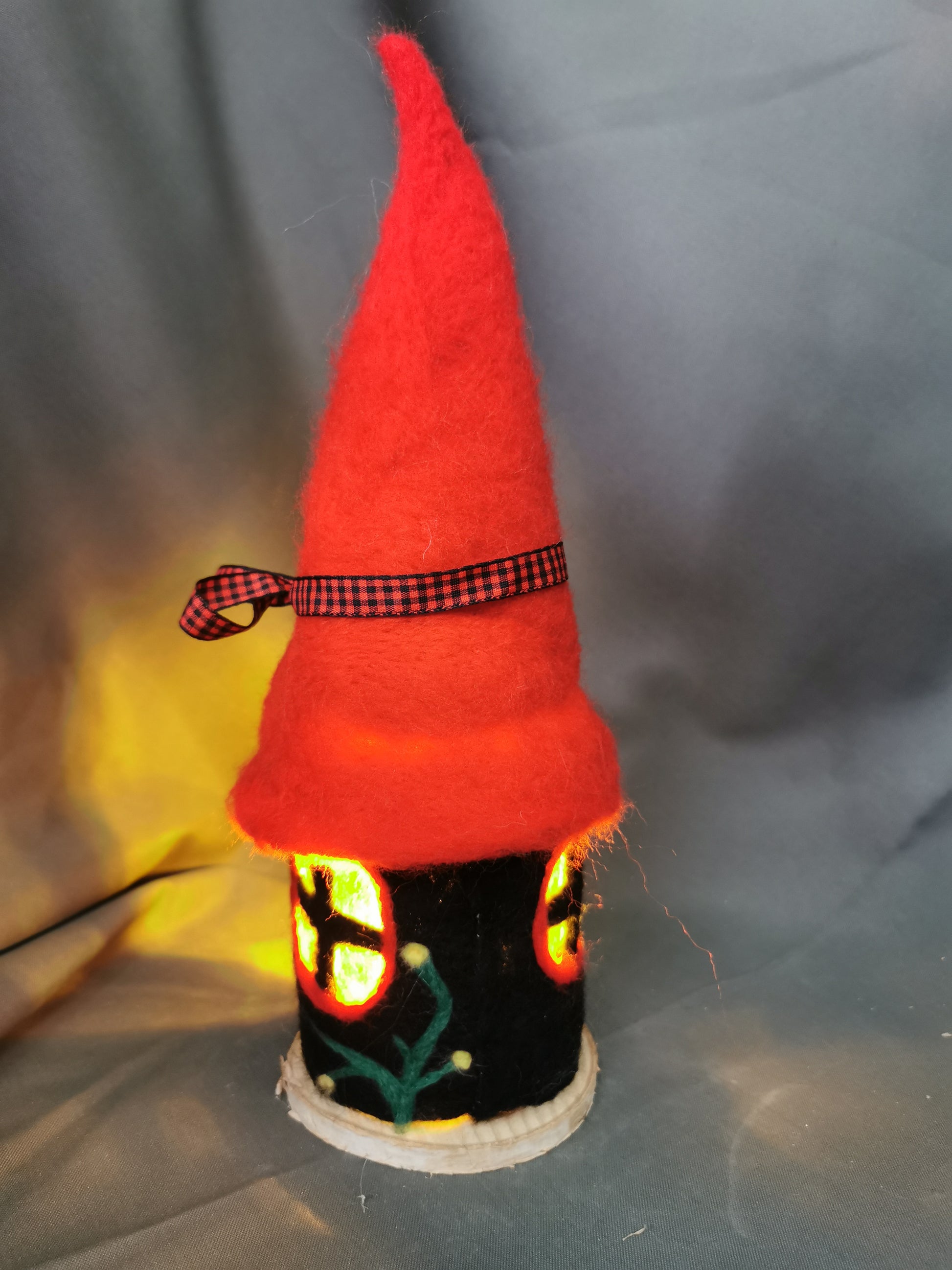 Ein schönes Wichtelhaus aus Filz und Glas, inkl. LED Lichterkette (inkl. Batterien). Das Dach kann man aufschrauben um die Lichterkette An/Aus zu machen oder einen Batteriewechsel vorzunehmen.