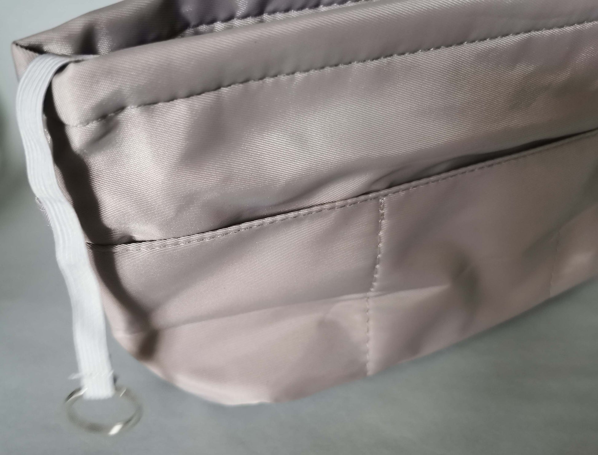 Innentasche aus Nylon mit zusätzlichem Reißverschluss, mehrere Innen und Außenfächer, im Innern ein Fach mit Reißverschluss, Schlüsselsicherungsriemen.