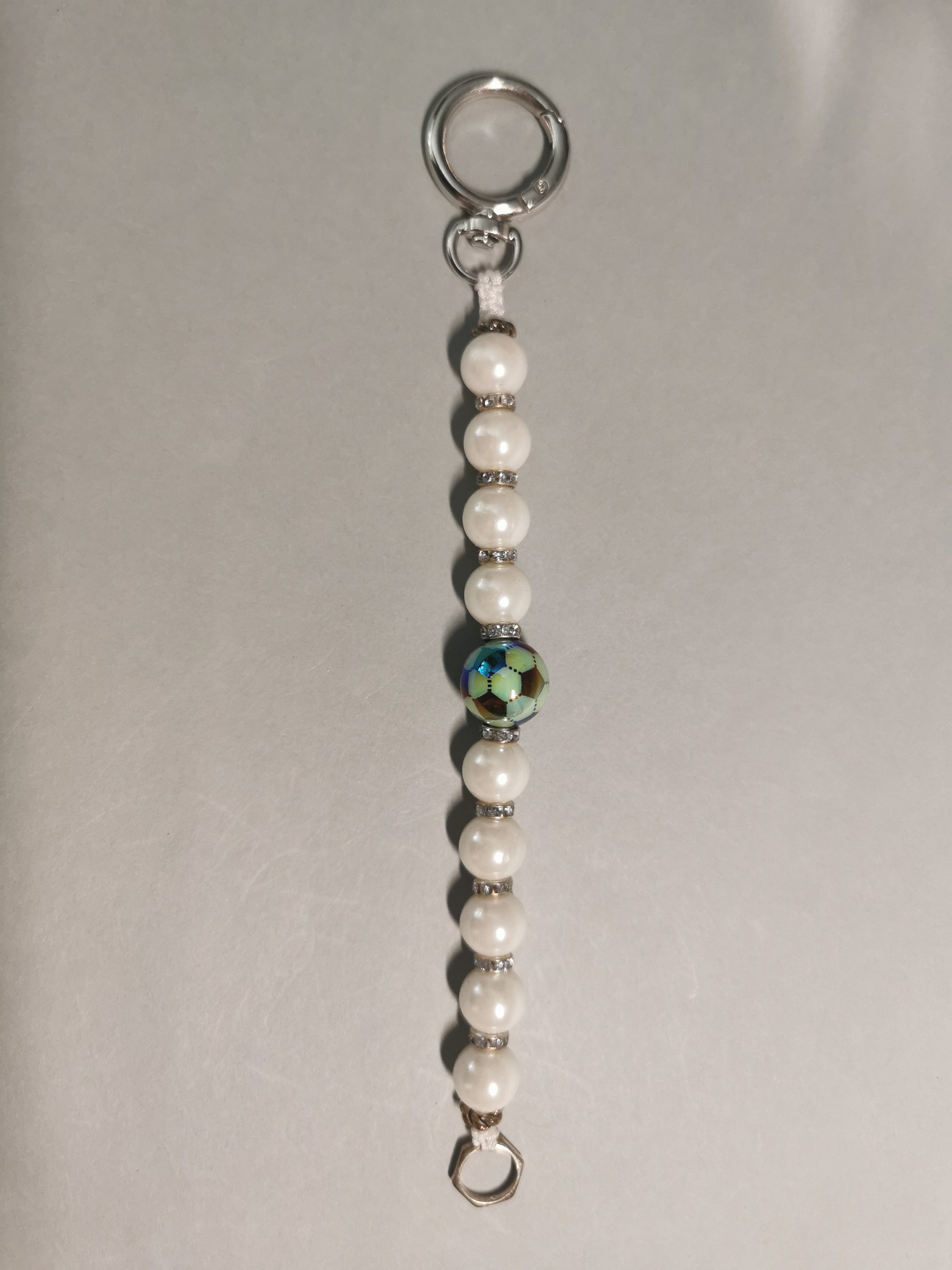 Acrylperlenhandykette mit Fußball, 12 mm Acrylperlen in cremeweiß, 15mm Acrylperle in Fußball Optik, silberfarbene Zwischenperlen mit Strass. mit silberfarbenen Ringkarabiner. Handykette universal, handgefertigt in Deutschland, Necklace zum umhängen, kompatibel mit allen Smartphone, Handyhülle erforderlich (nicht im Lieferumfang enthalten). Bindung: spezielle Schnürung für einen langlebigen Halt, inkl. Pad. und Verlängerungskette mit silberfarbenen Ringkarabiner und Einsteckring. Verlängerung kann auch als Handytrageschlaufe, Schlüsselanhänger oder Taschenschmuck getragen werden.