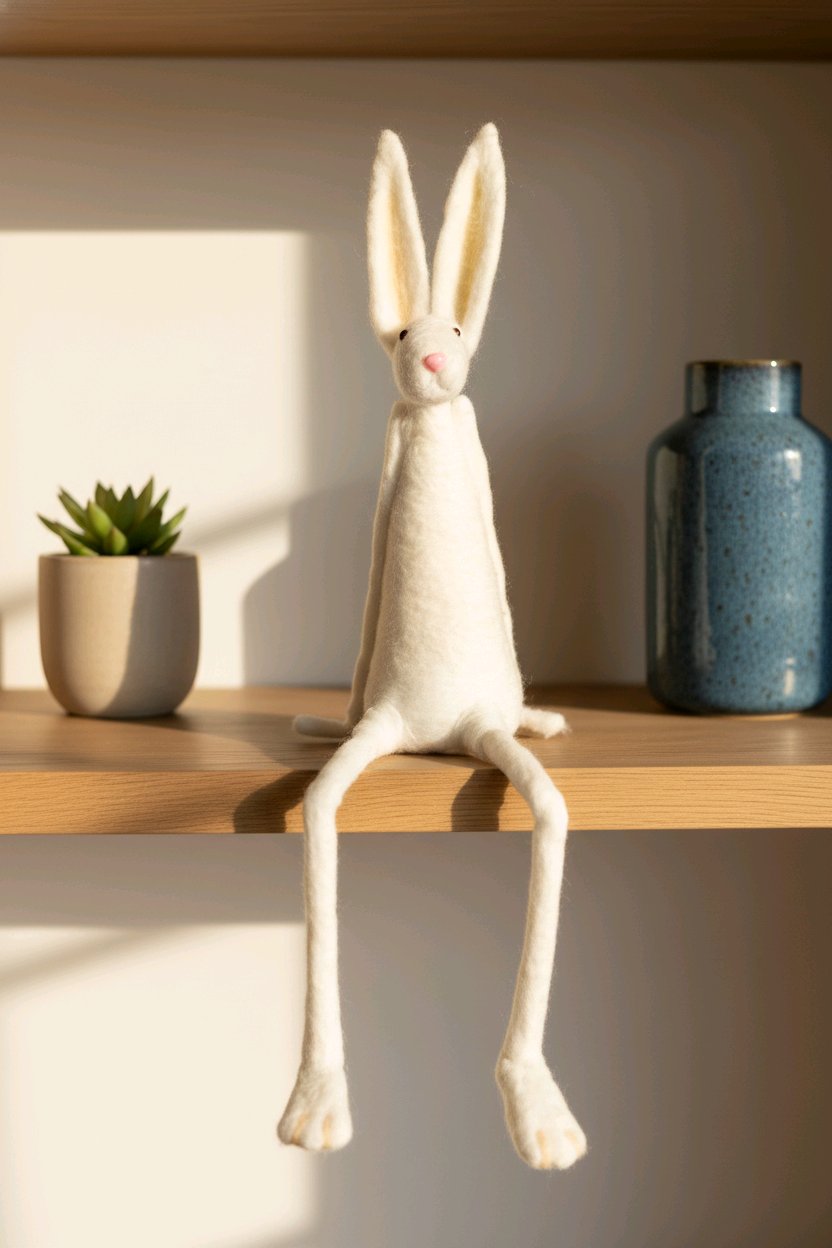 Hase sitzend weiß, handgefertigt