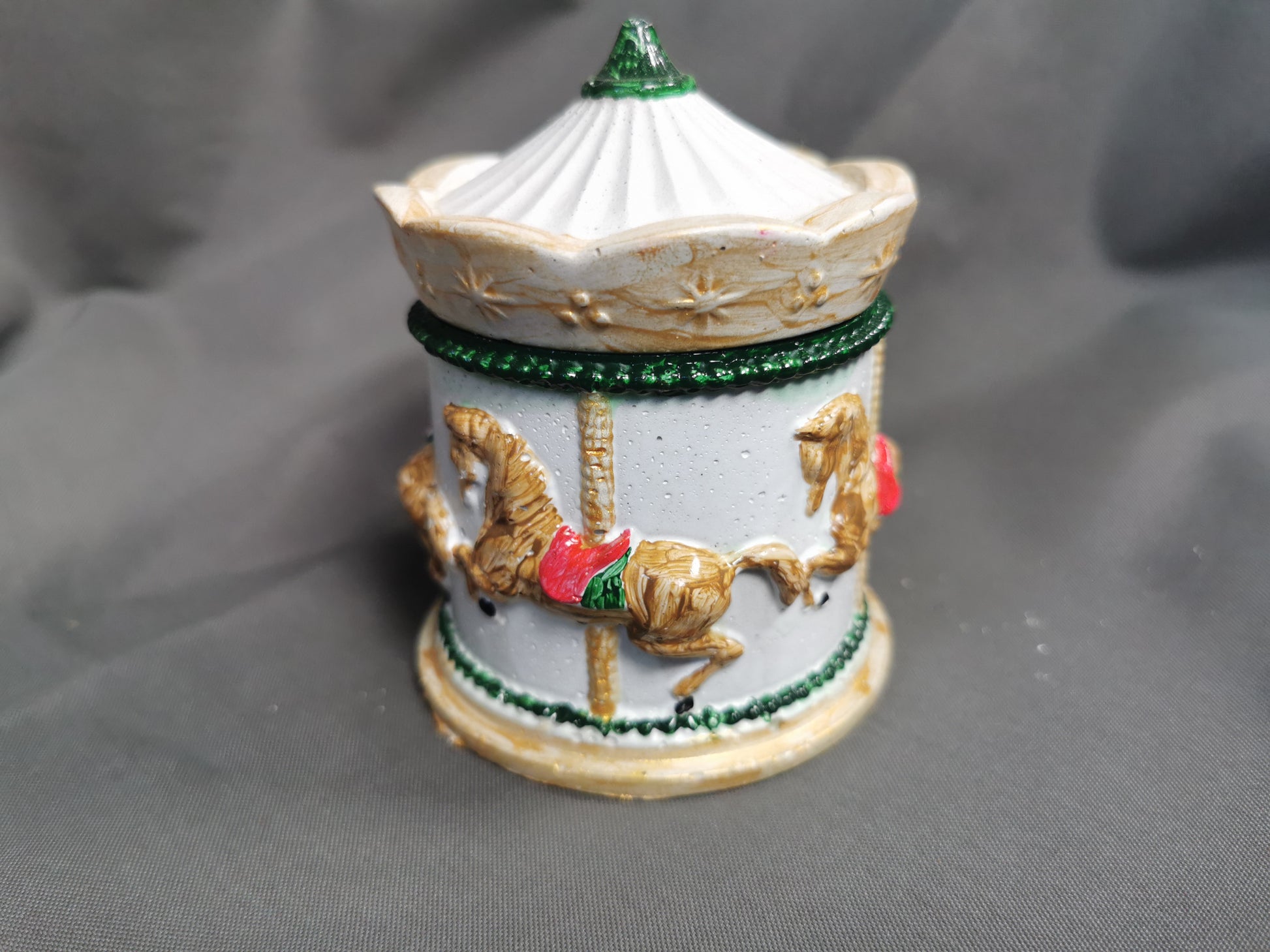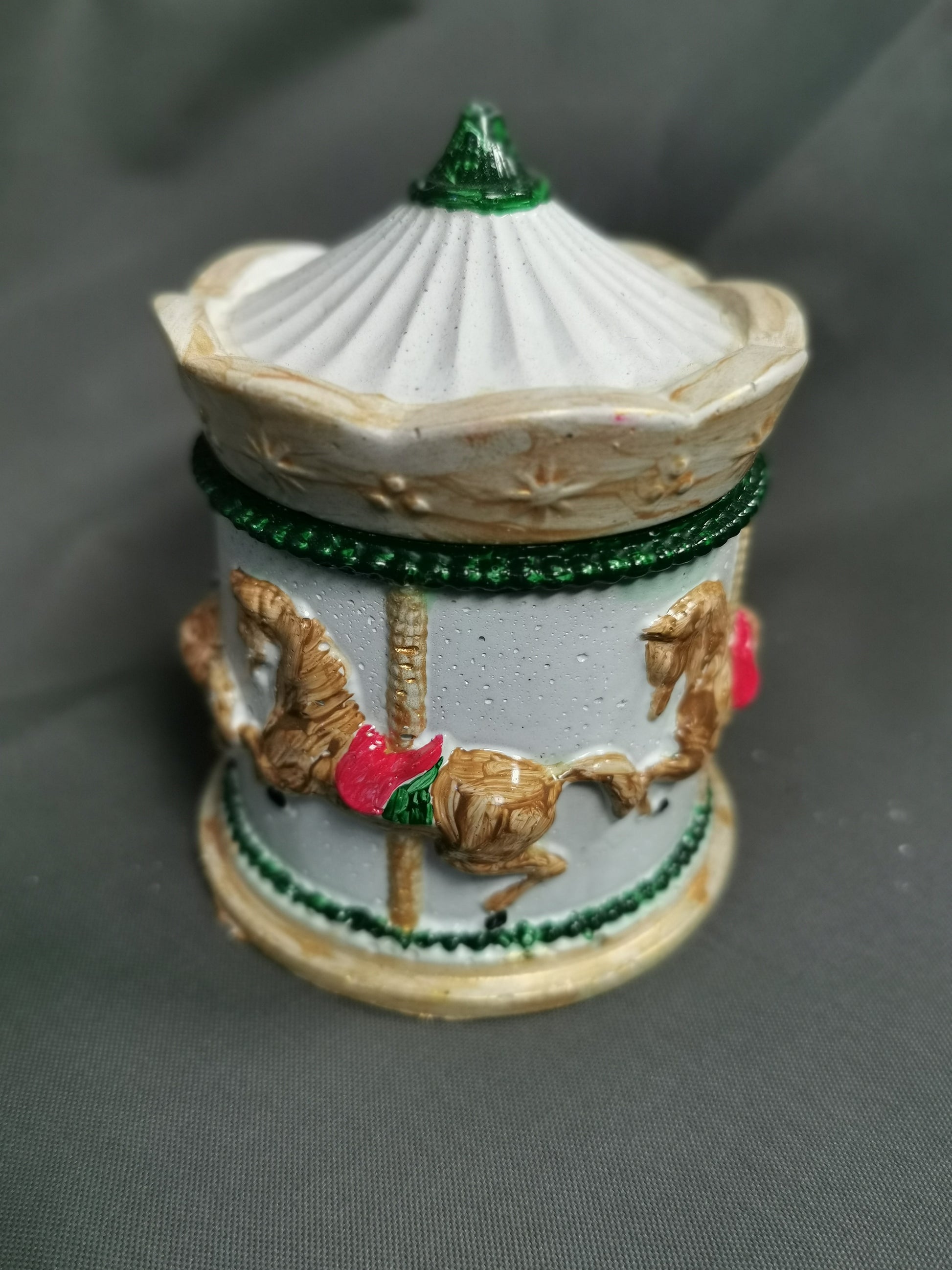 Betondose mit Decke "Pferdekarussell", handgemachte und bemalte Dose mit Deckel, als Schmuckdose, Deko, Bad Organizer.