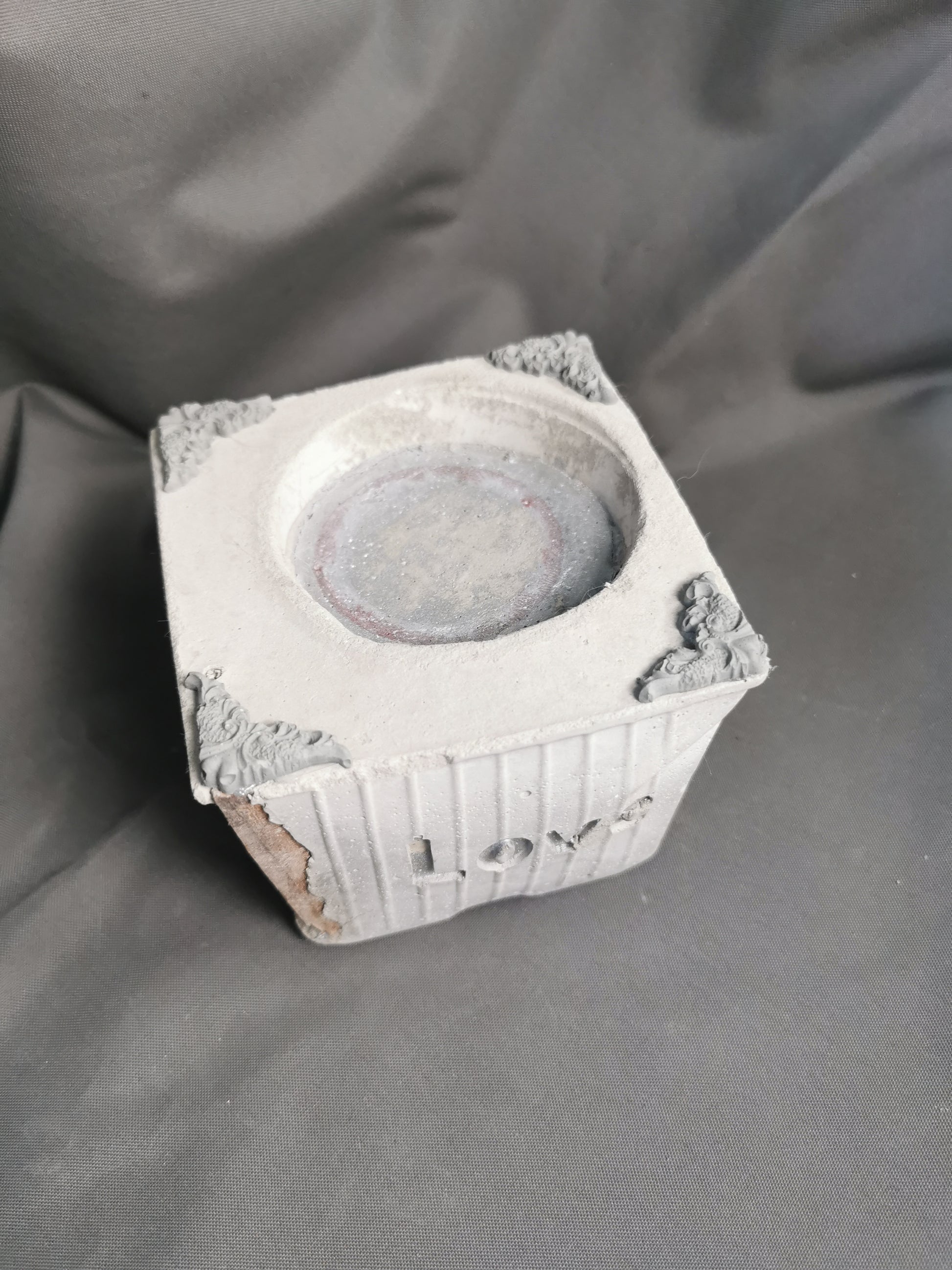 Maße: 11 cm B, 11 cm T, 8,5 cm H