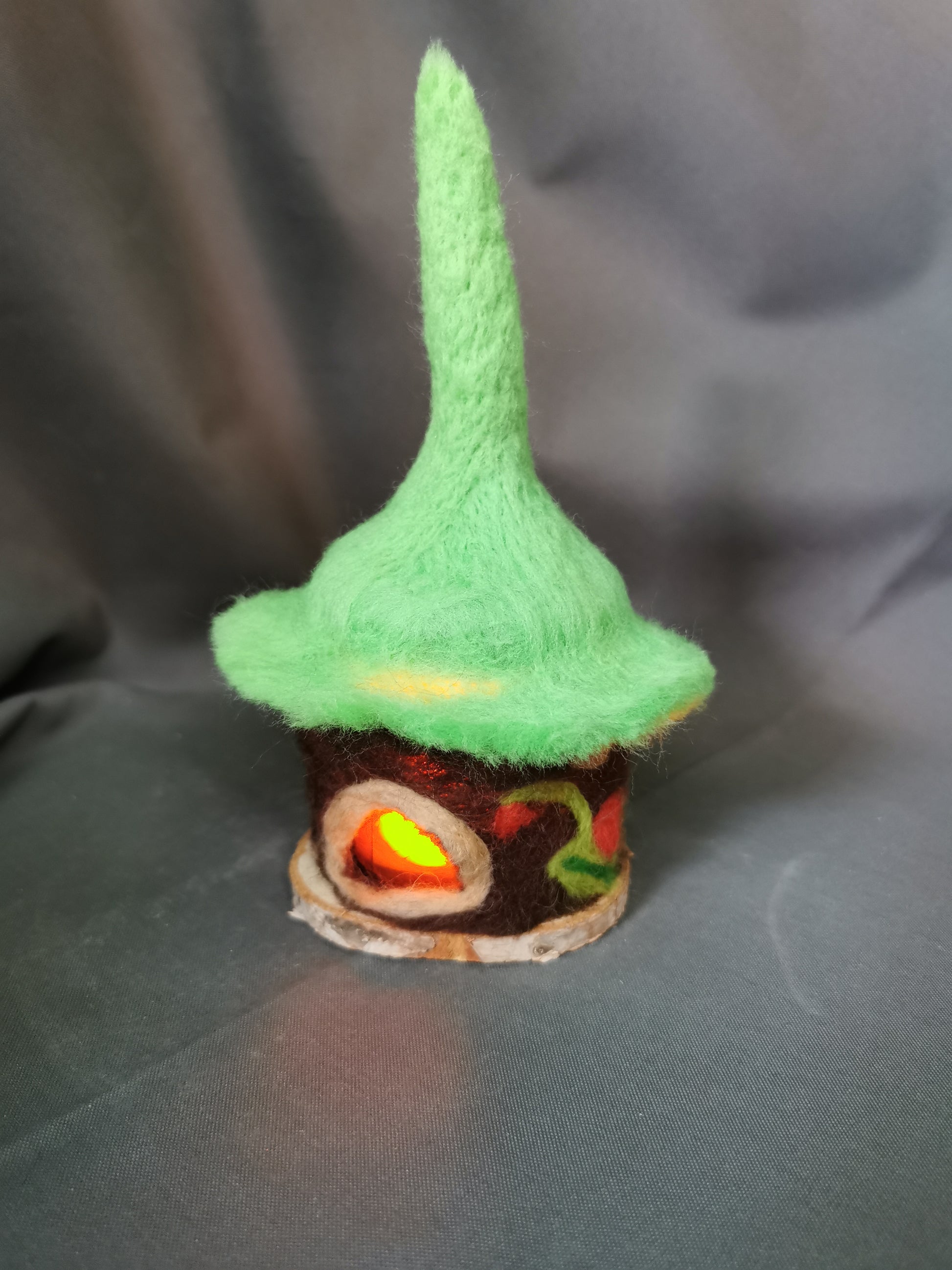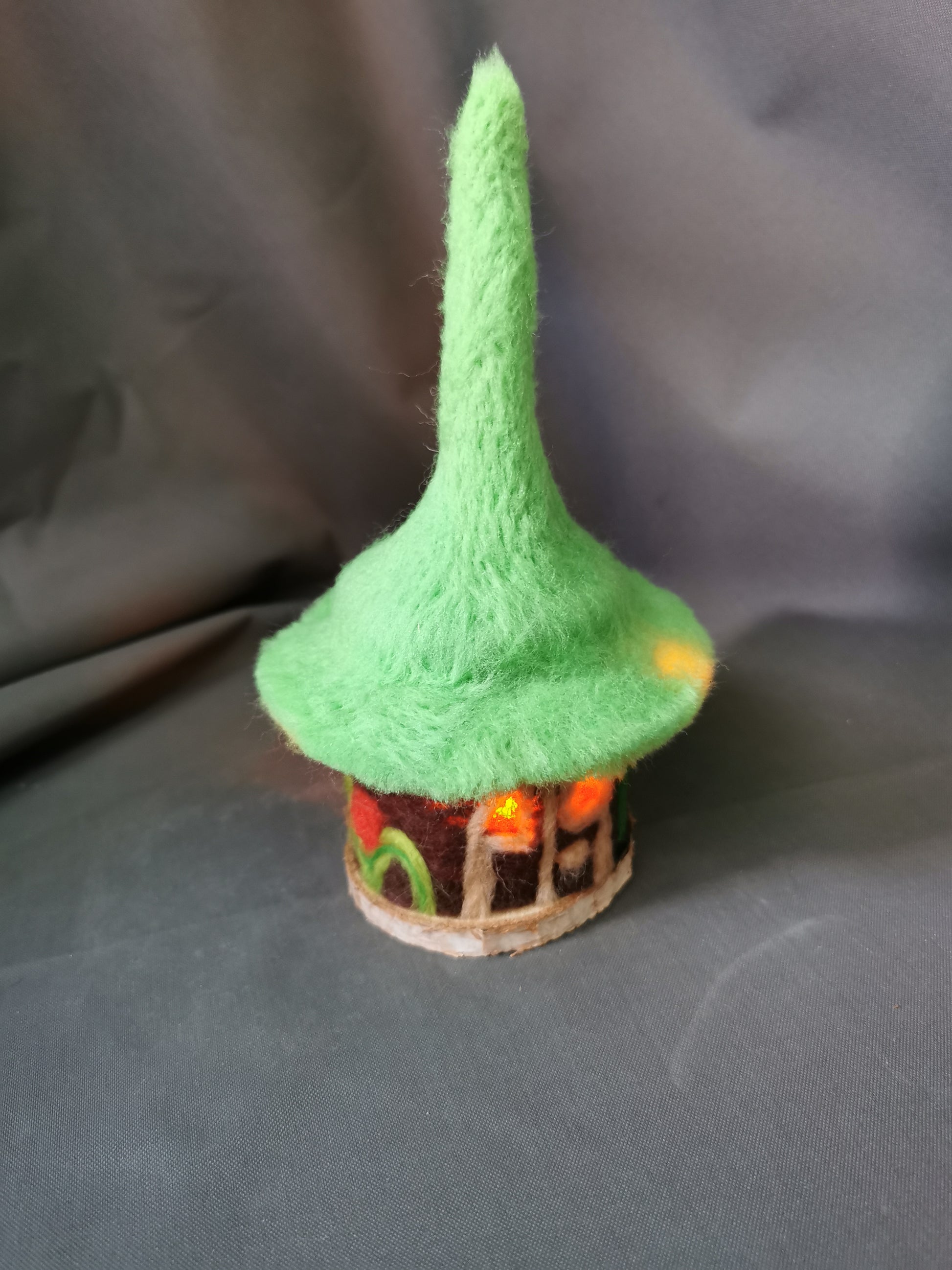 kleines Filz-Wichtelhaus mit Leuchtmittel