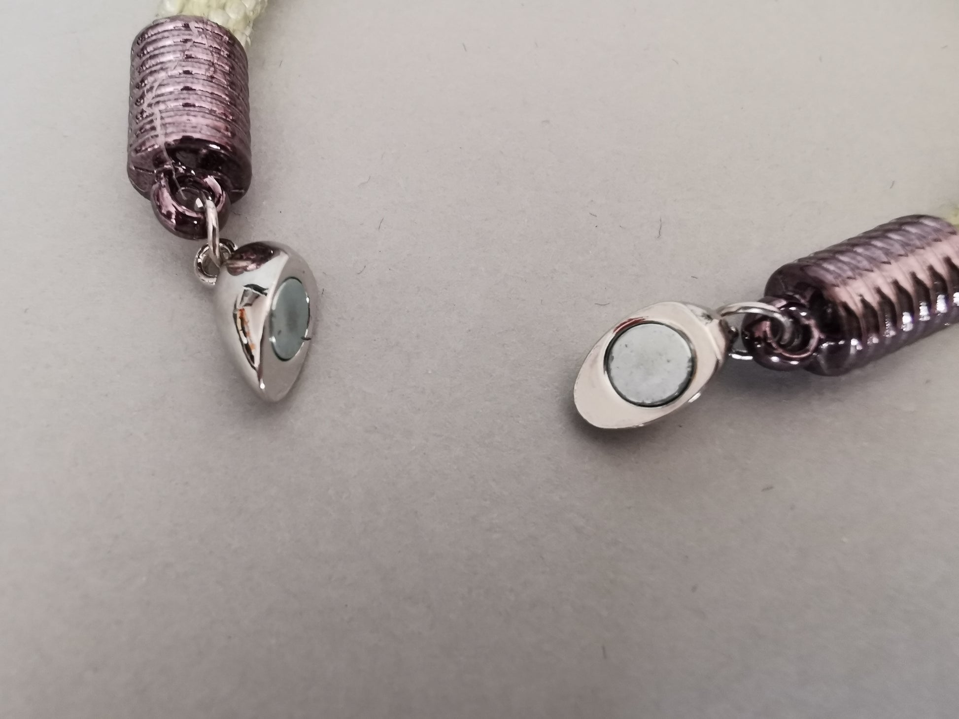 silberfarbene Endkappen mit Herzmagnetverschluss.