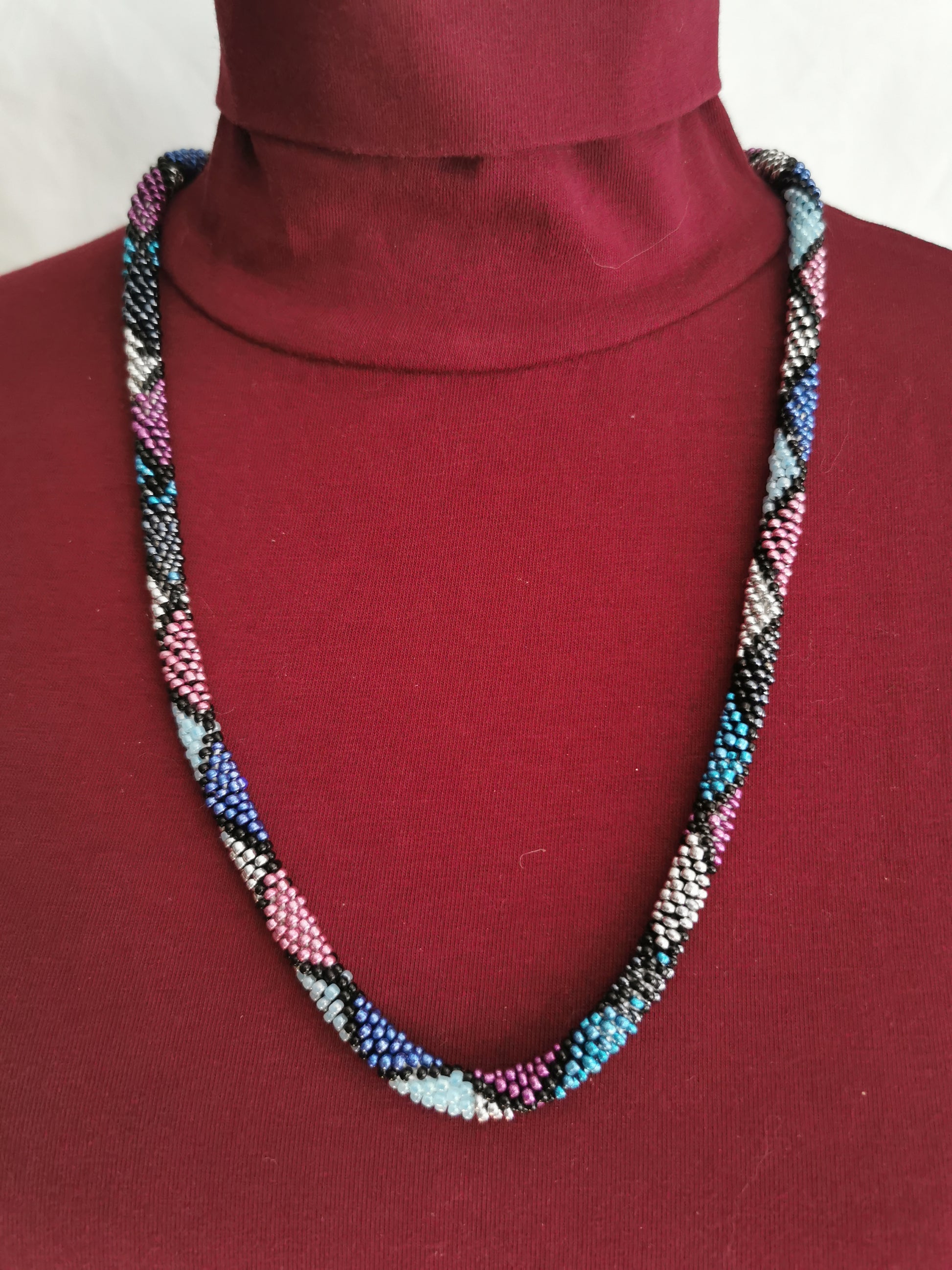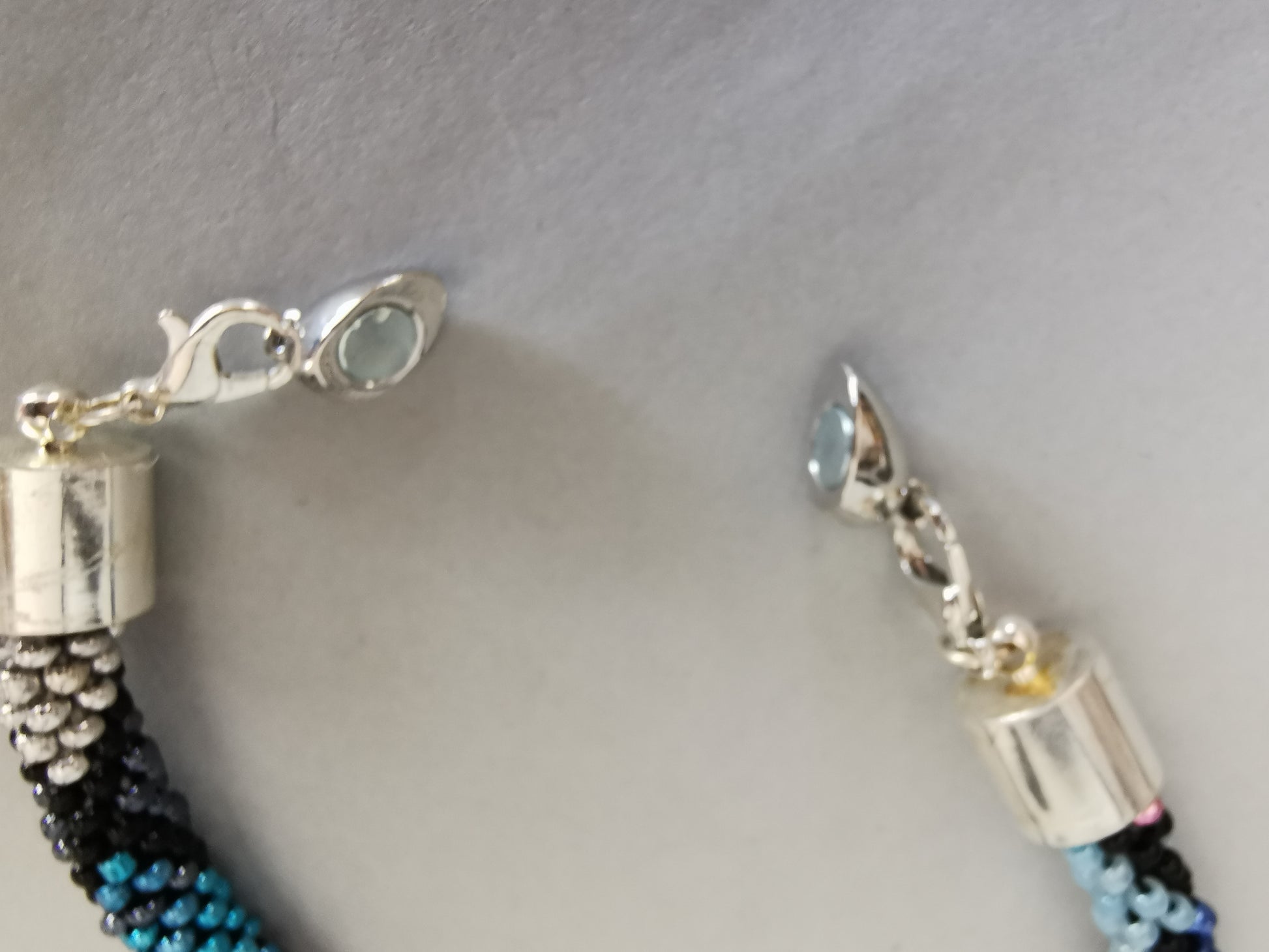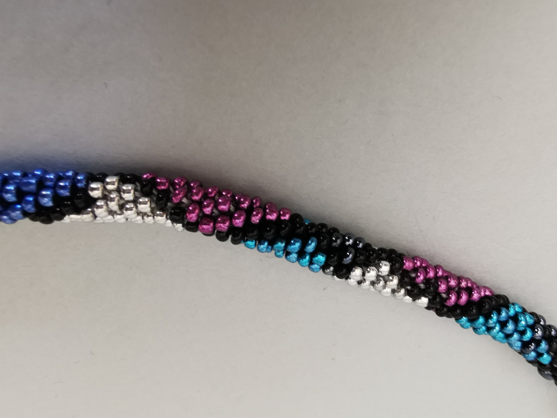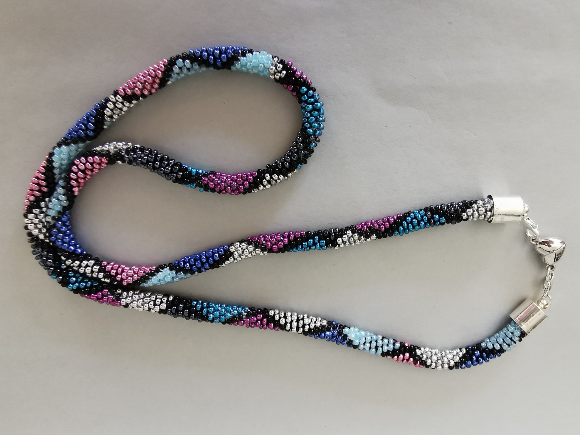 Bunt gemusterte Kette mit silberfarbenen Endkappen