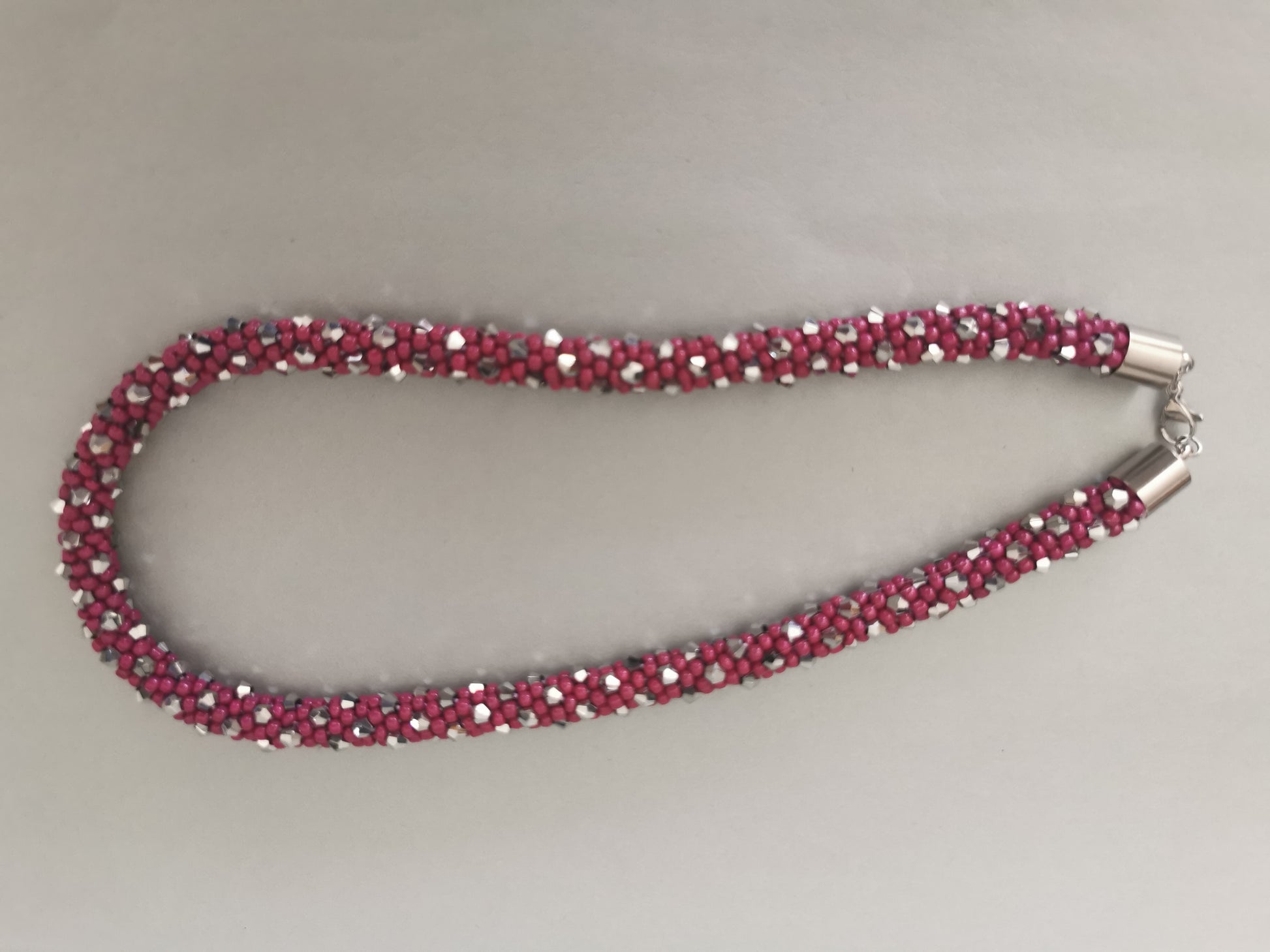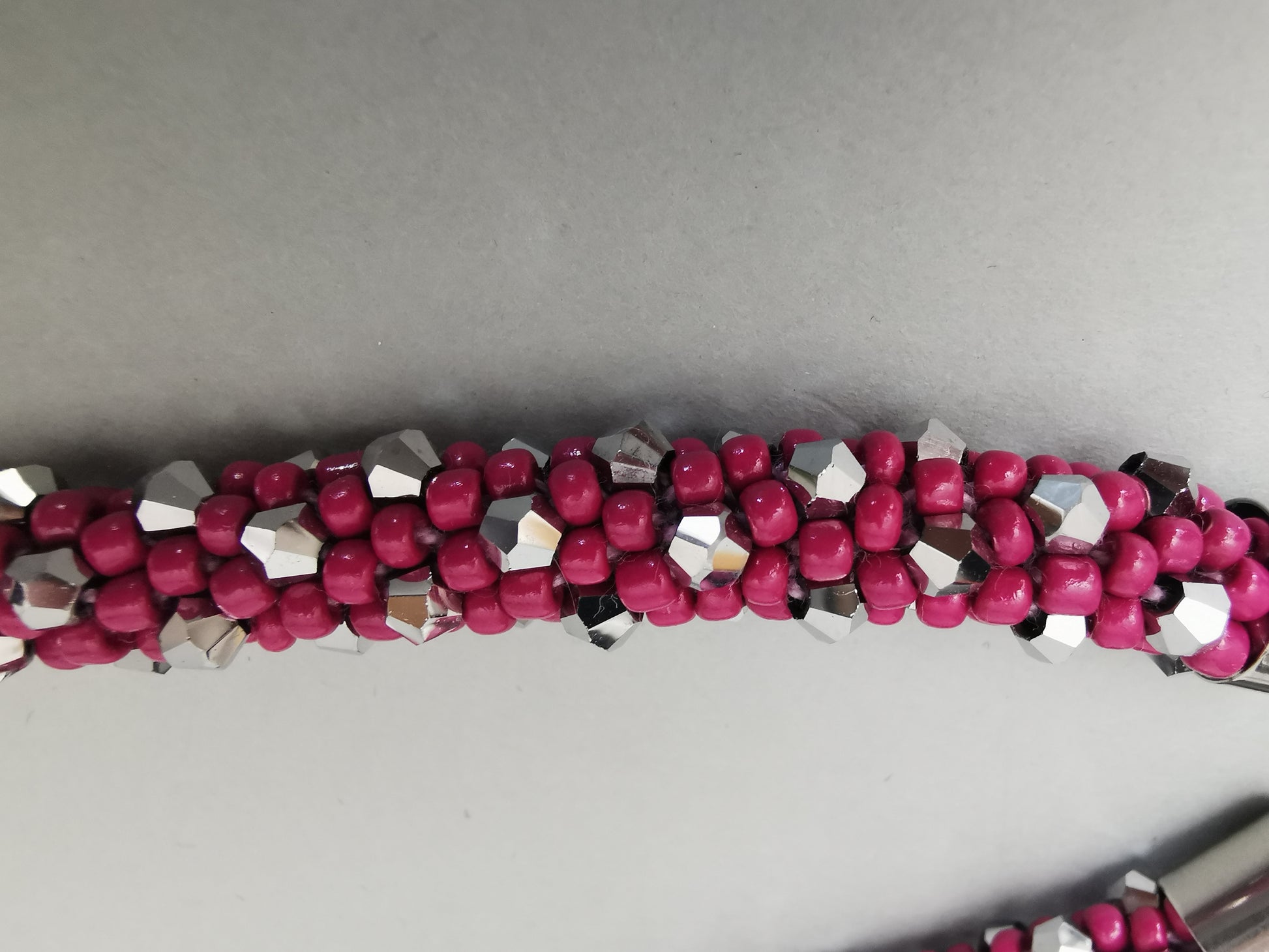 altrosa / facettierte silberfarbene Perlen