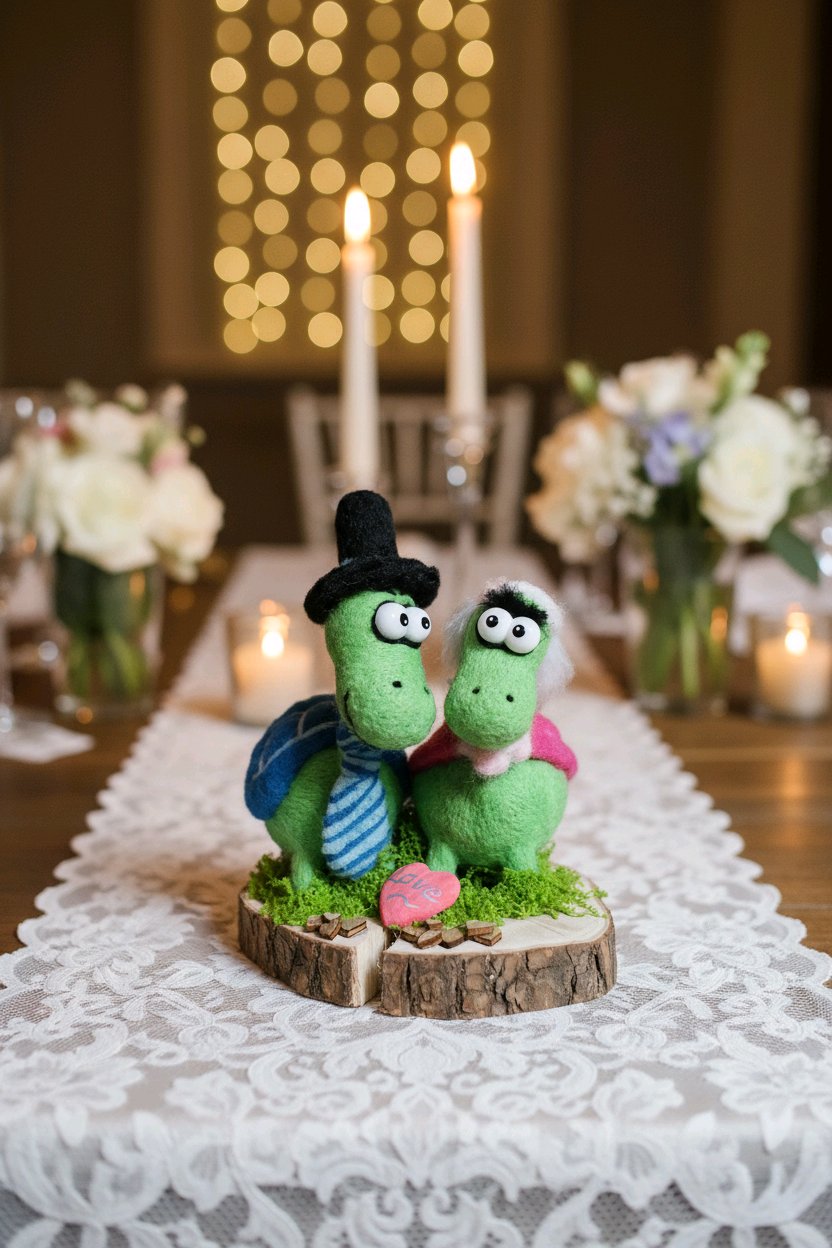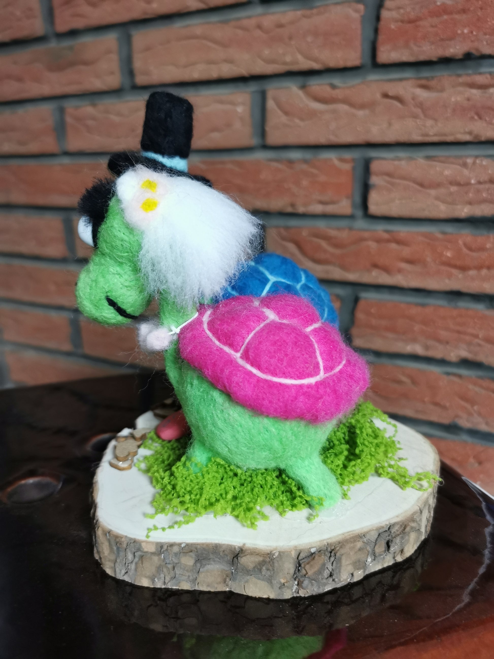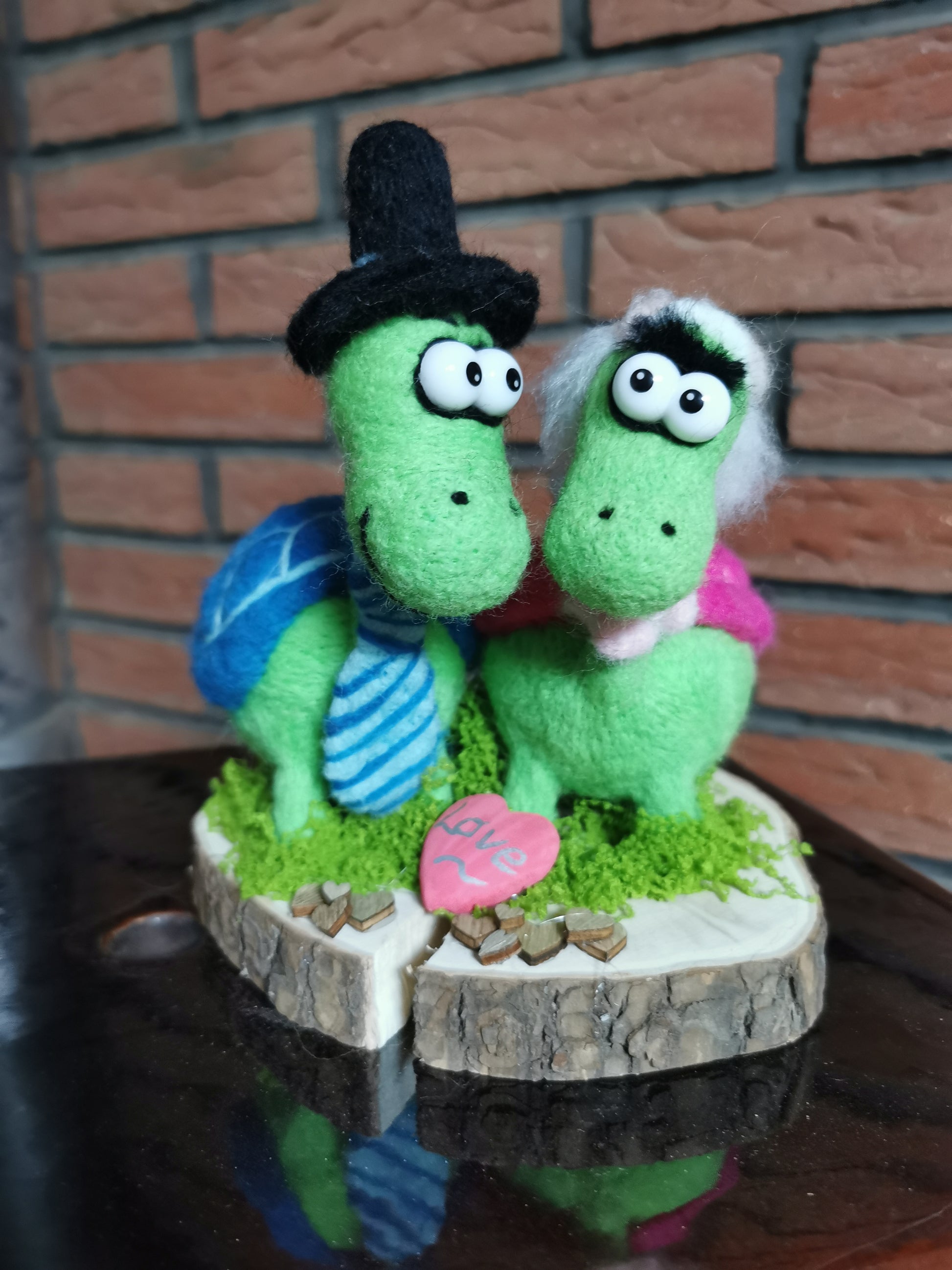Schildkröten Paar, Brautpaar auf Holzscheibe, handgefertigt, Unikat