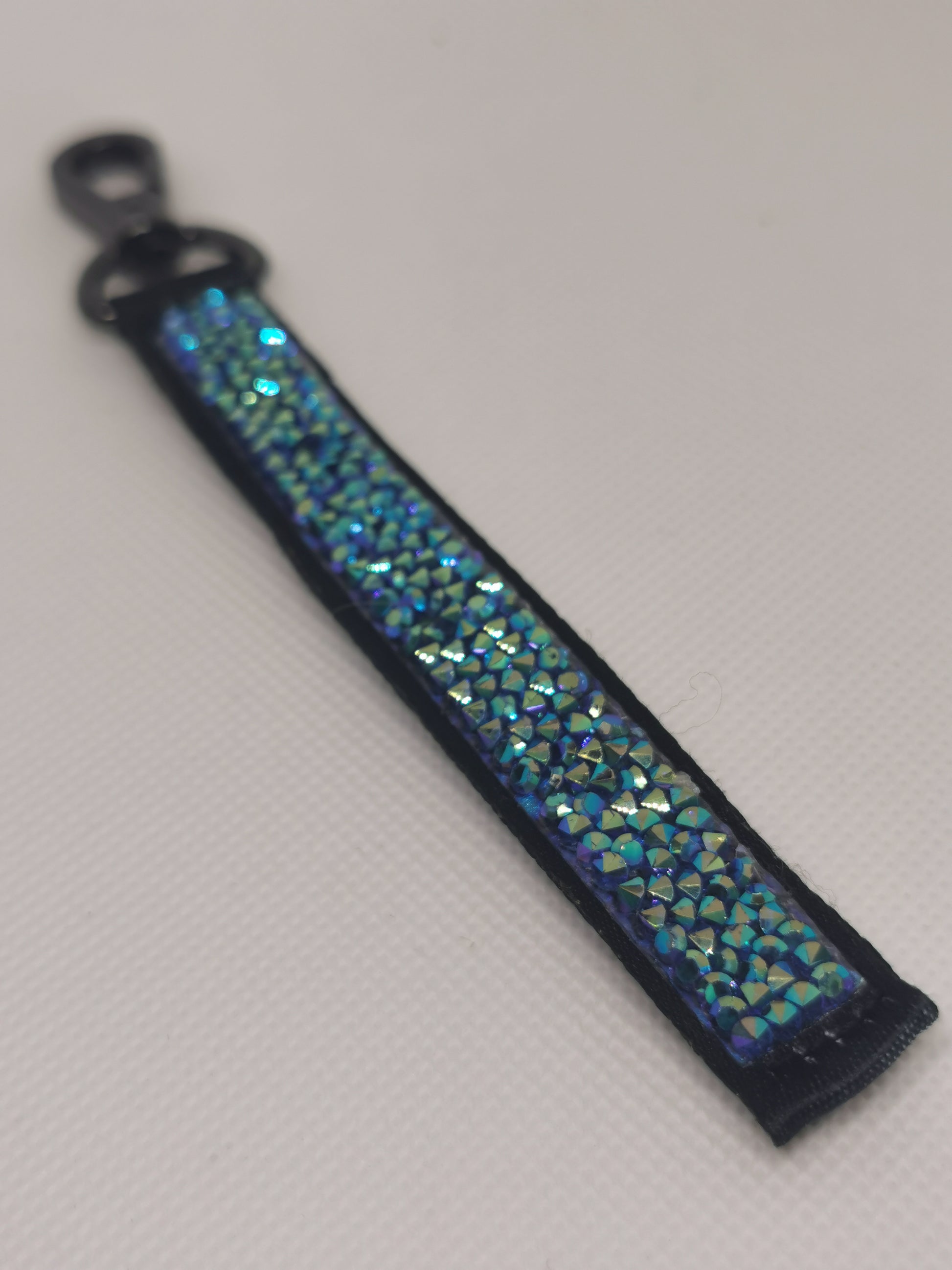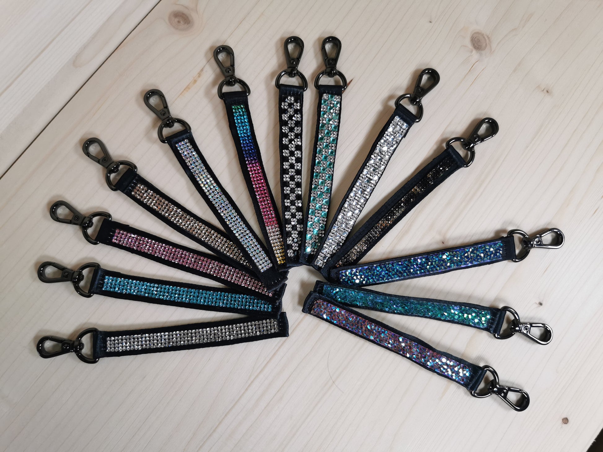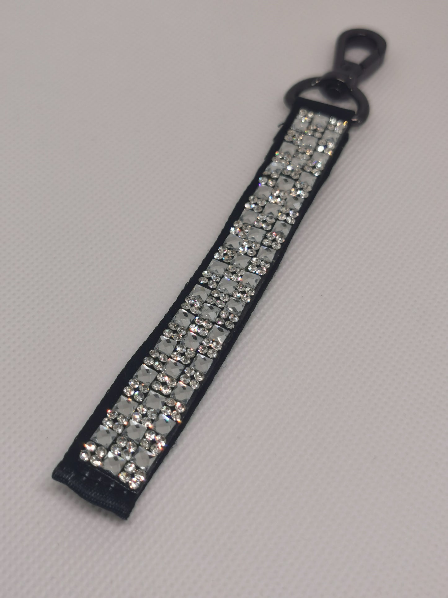 schwarzer Nylon Stoff mit Straß-Applikationen