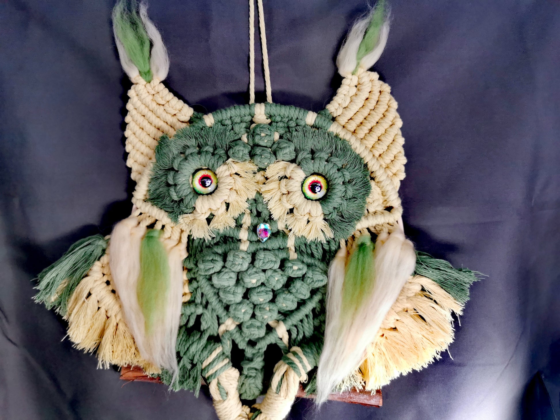 Wandschmuck Makramee grün/gelbe Eule